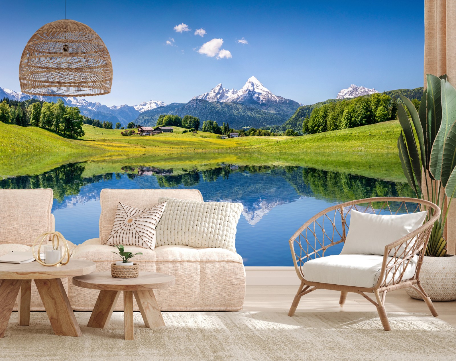 Fototapeta Alpejskie szczyty odbite w spokojnym jeziorze