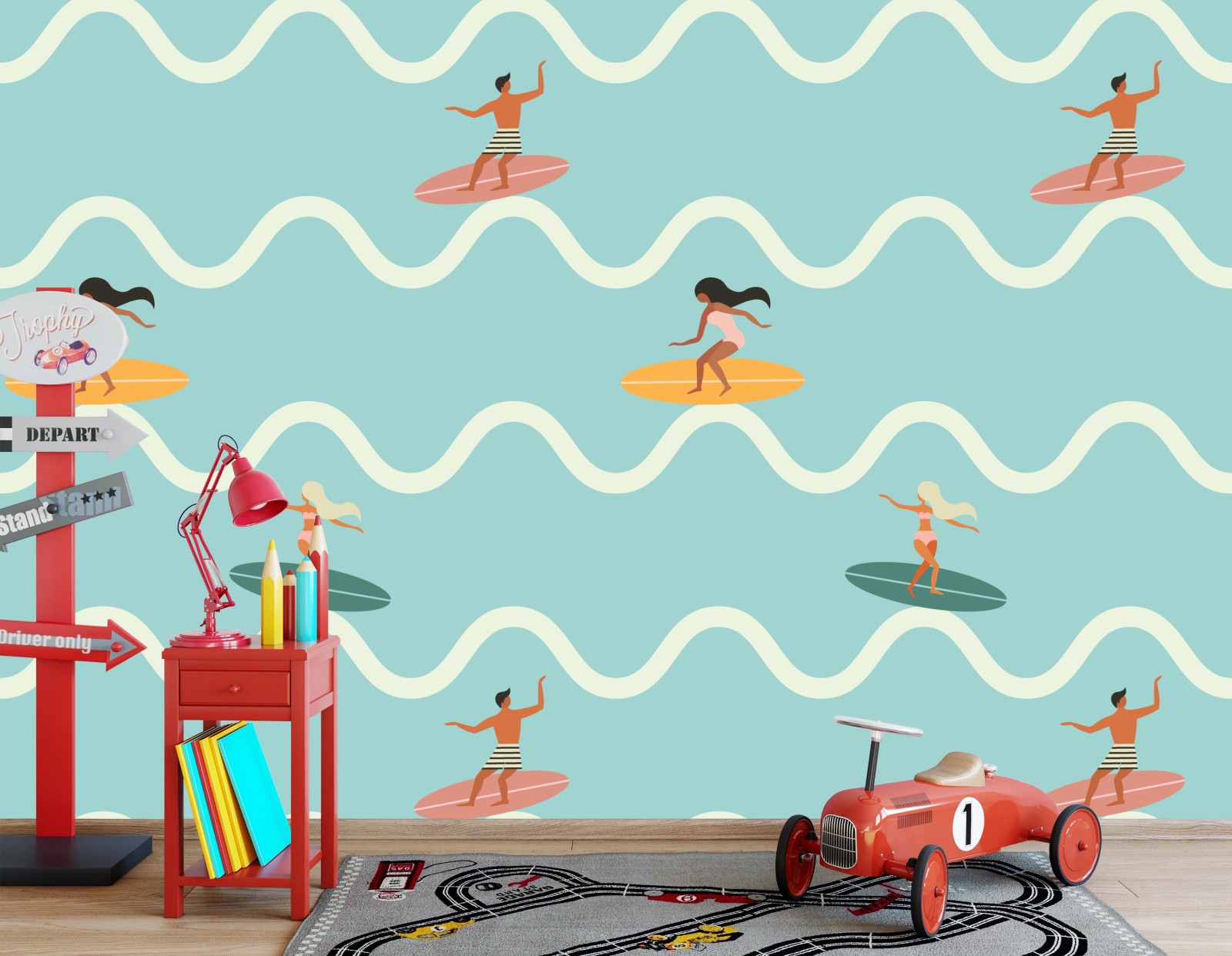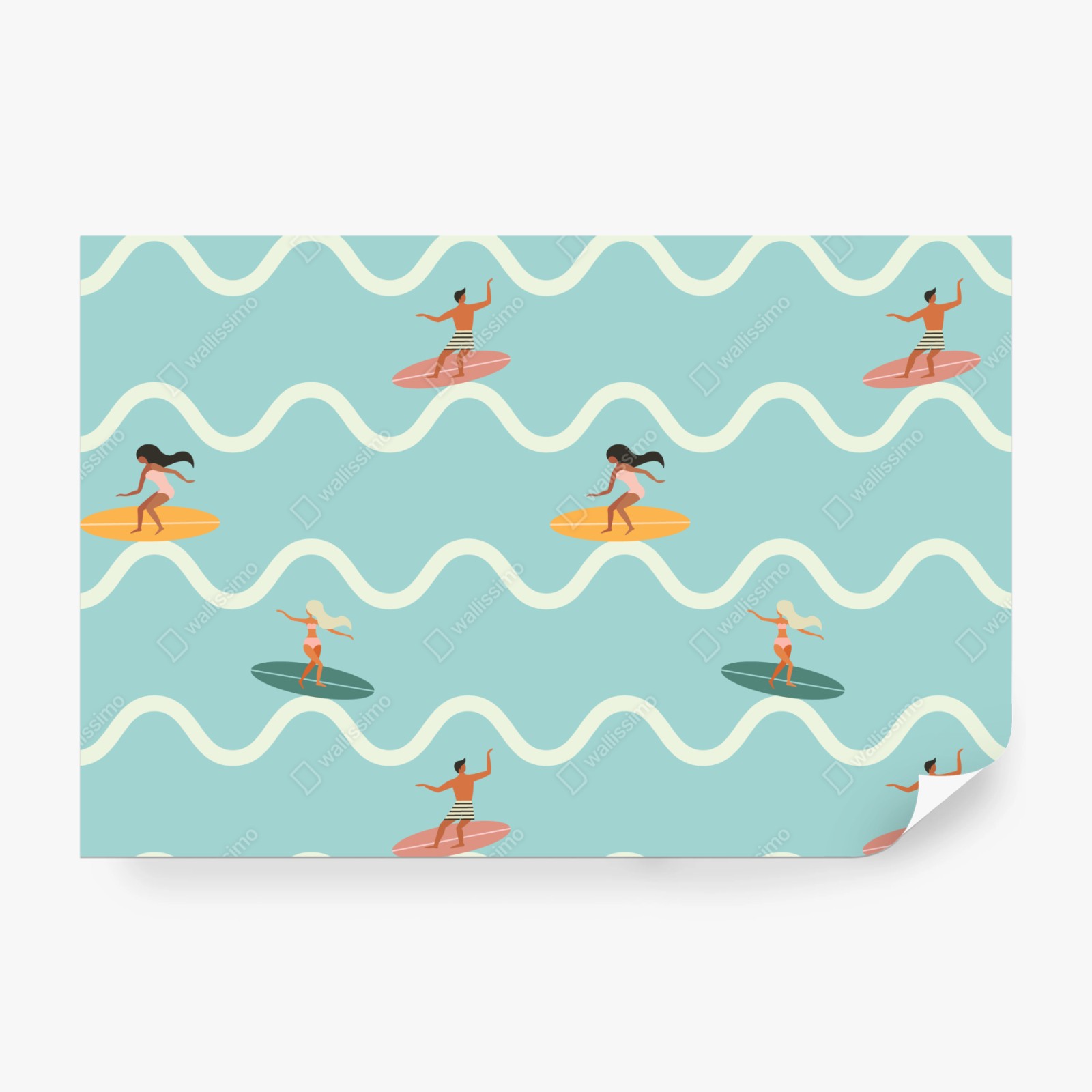 Fototapeta Wzór z surferami na turkusowych falach