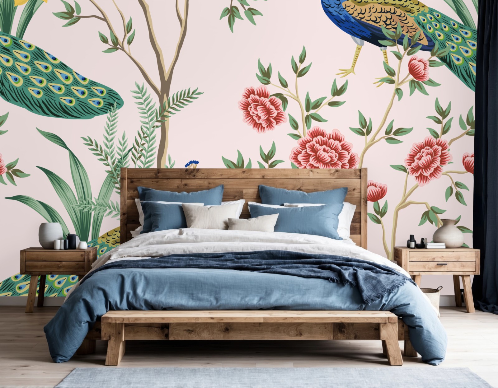Fototapeta Elegancki wzór z pawiem i kwiatami na różowym tle