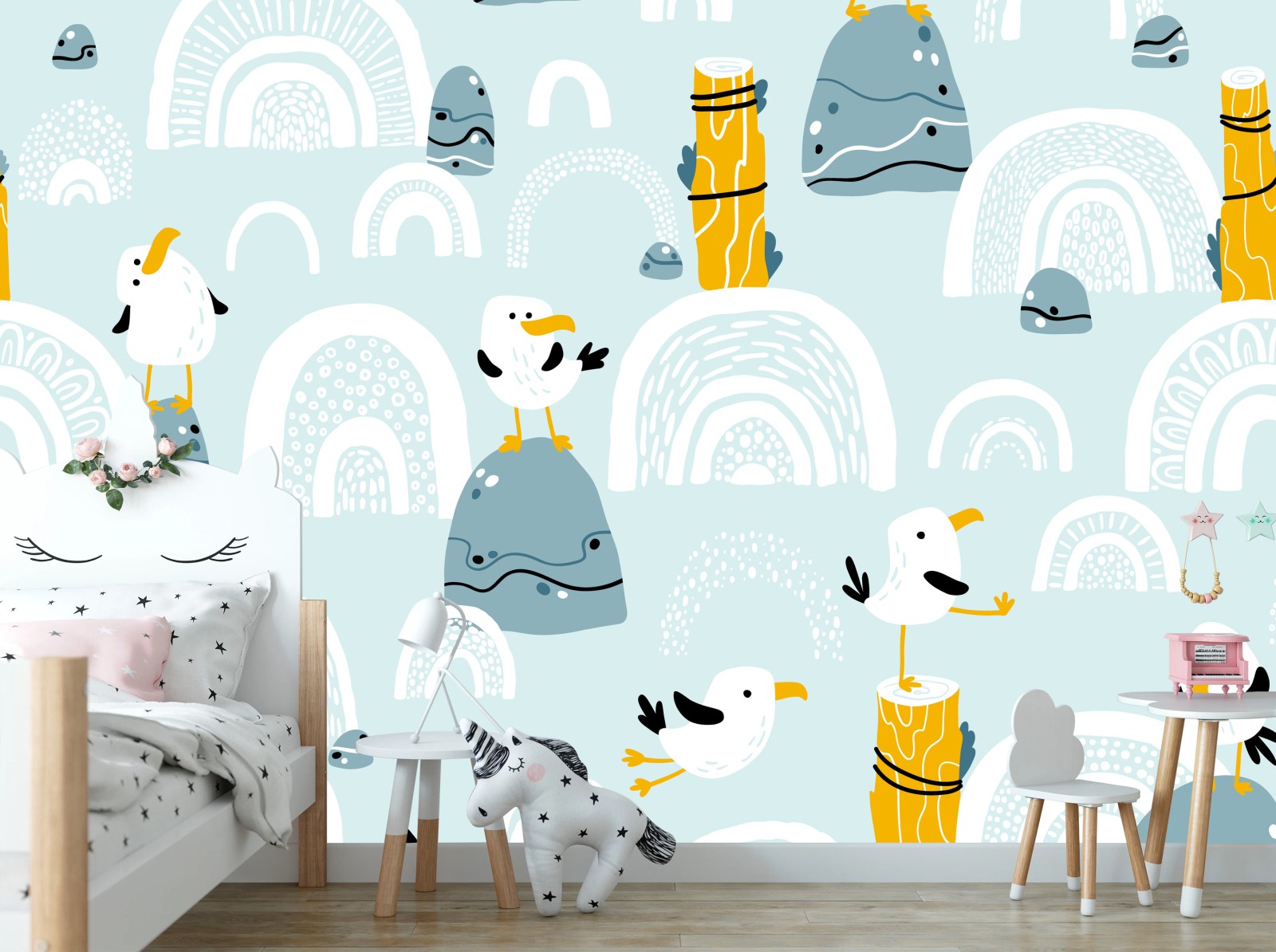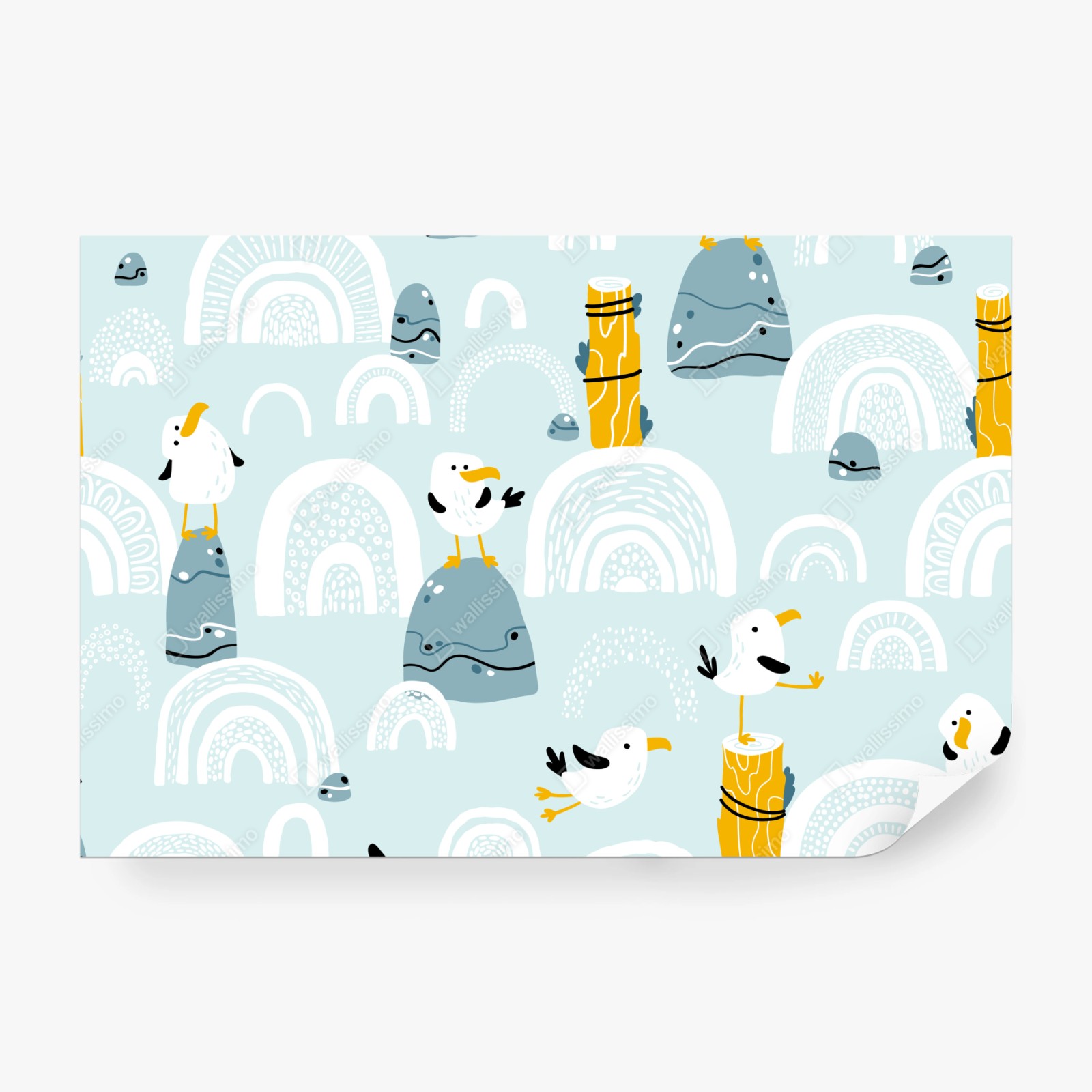 Fototapeta Wesołe mewy na pastelowych łukach
