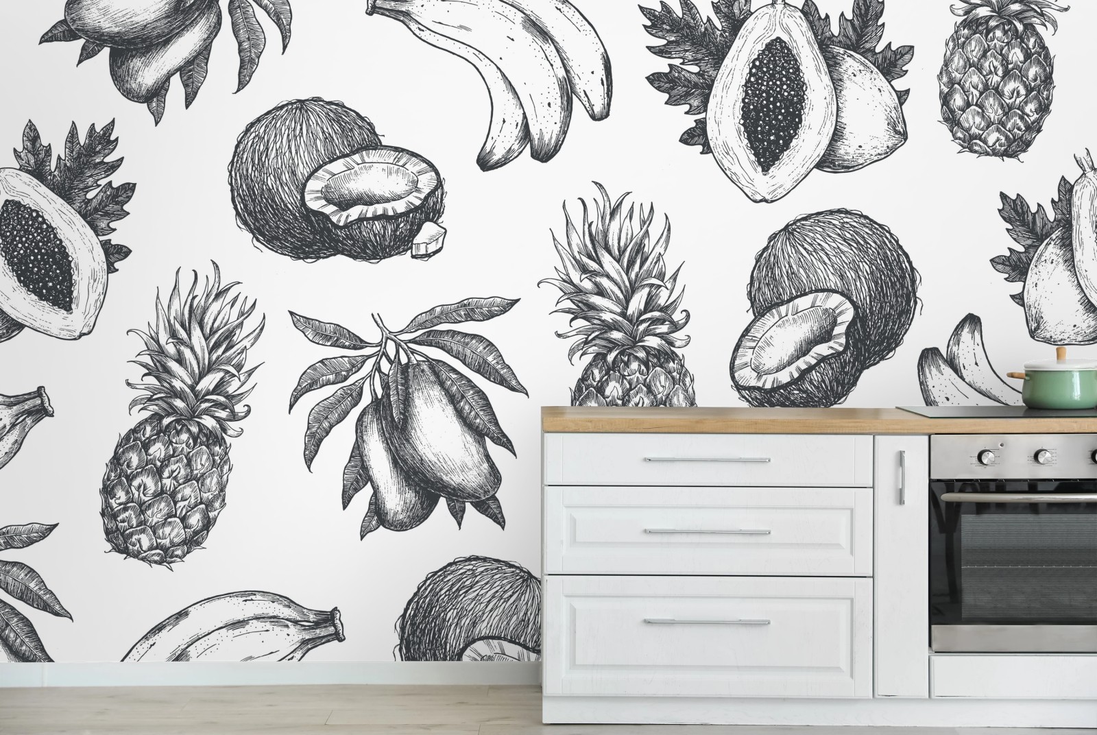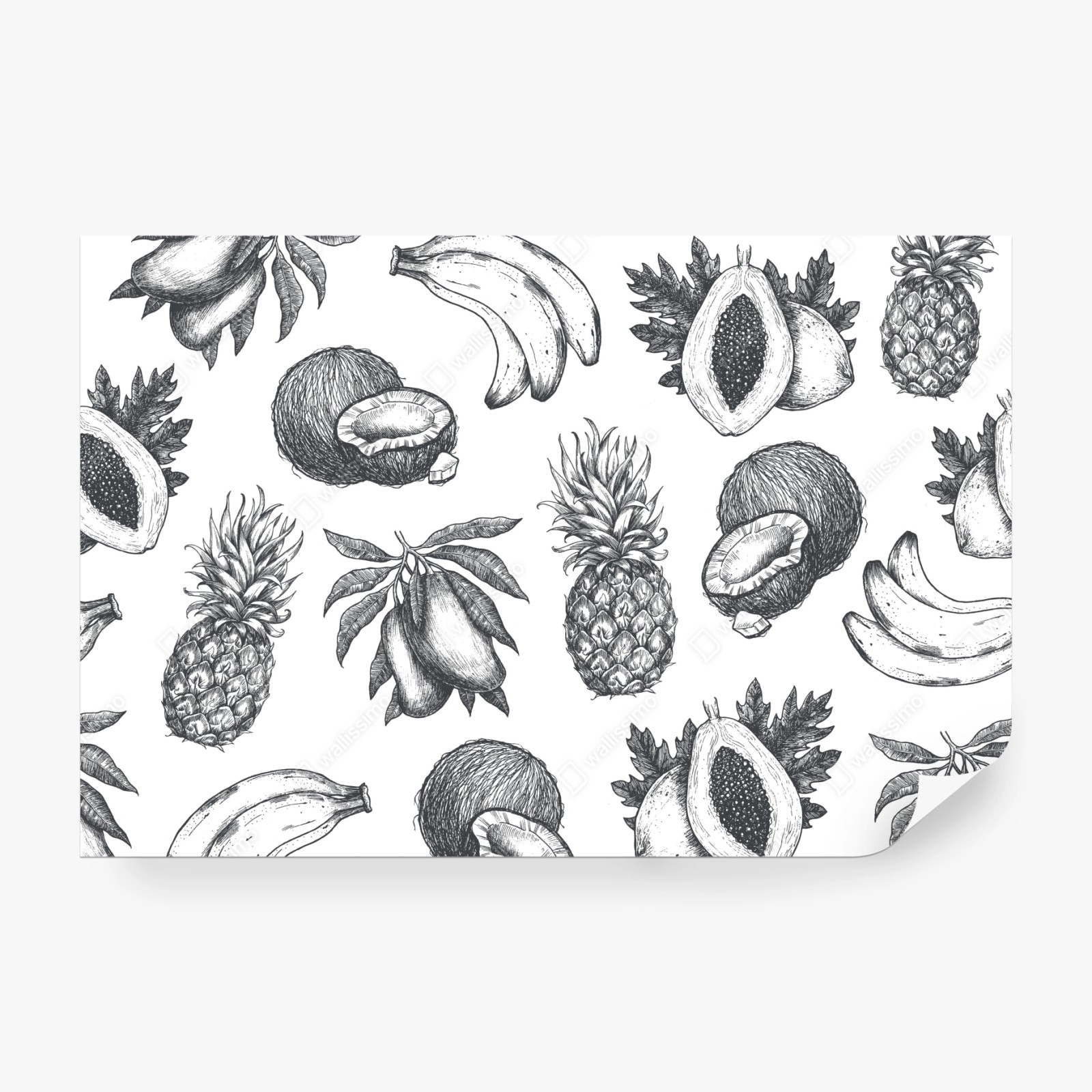 Fototapeta Ręcznie rysowany wzór tropikalnych owoców