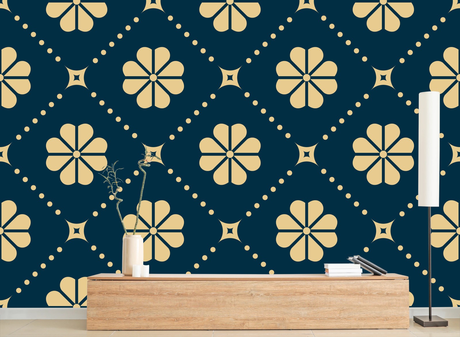 Fototapeta Turkusowo beżowy kwiatowy geometryczny wzór