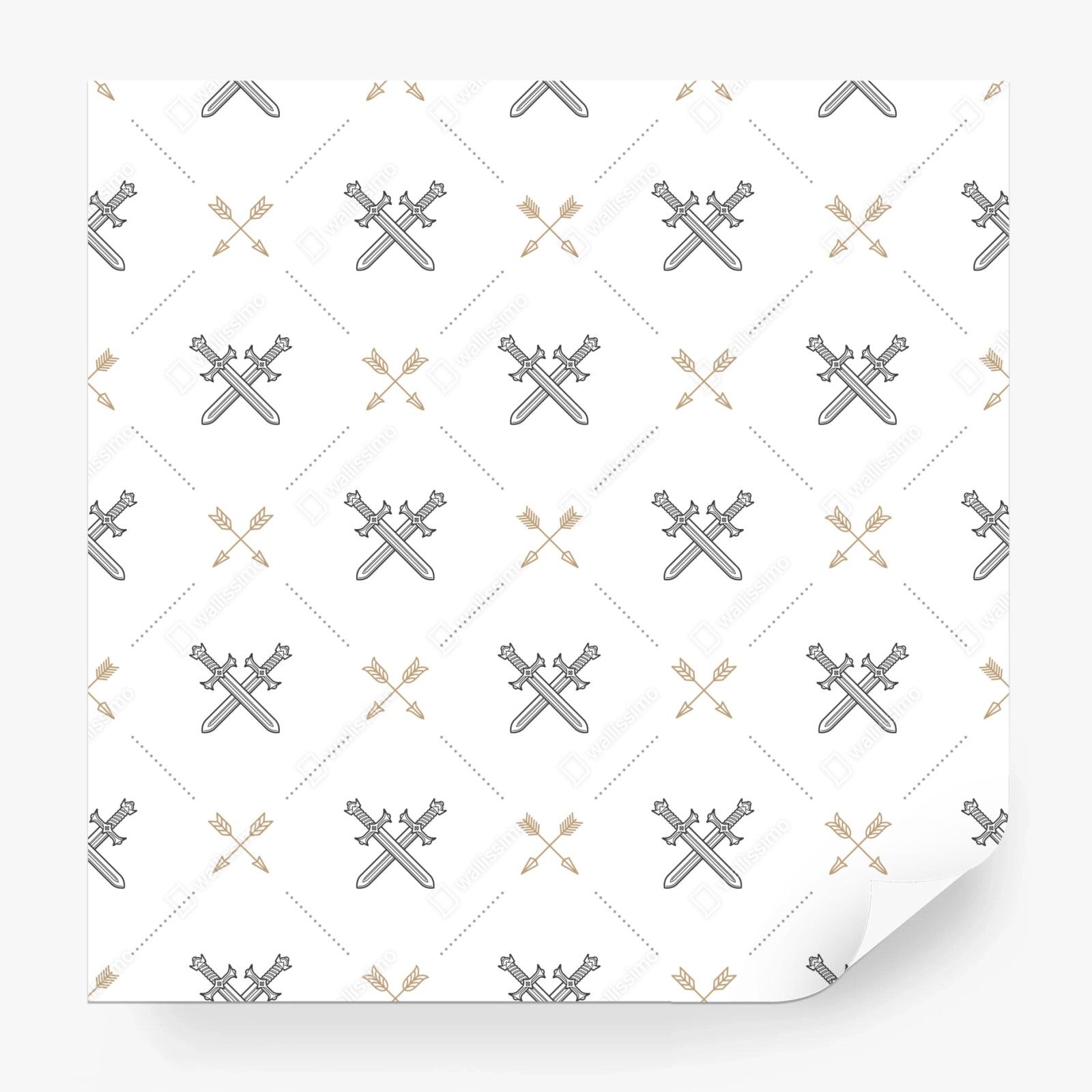 - pokój dziecięcy, grafika liniowa, wzór, minimalistyczny, powtarzalny, bezszwowy, strzały, miecze, średniowieczny, emblemat