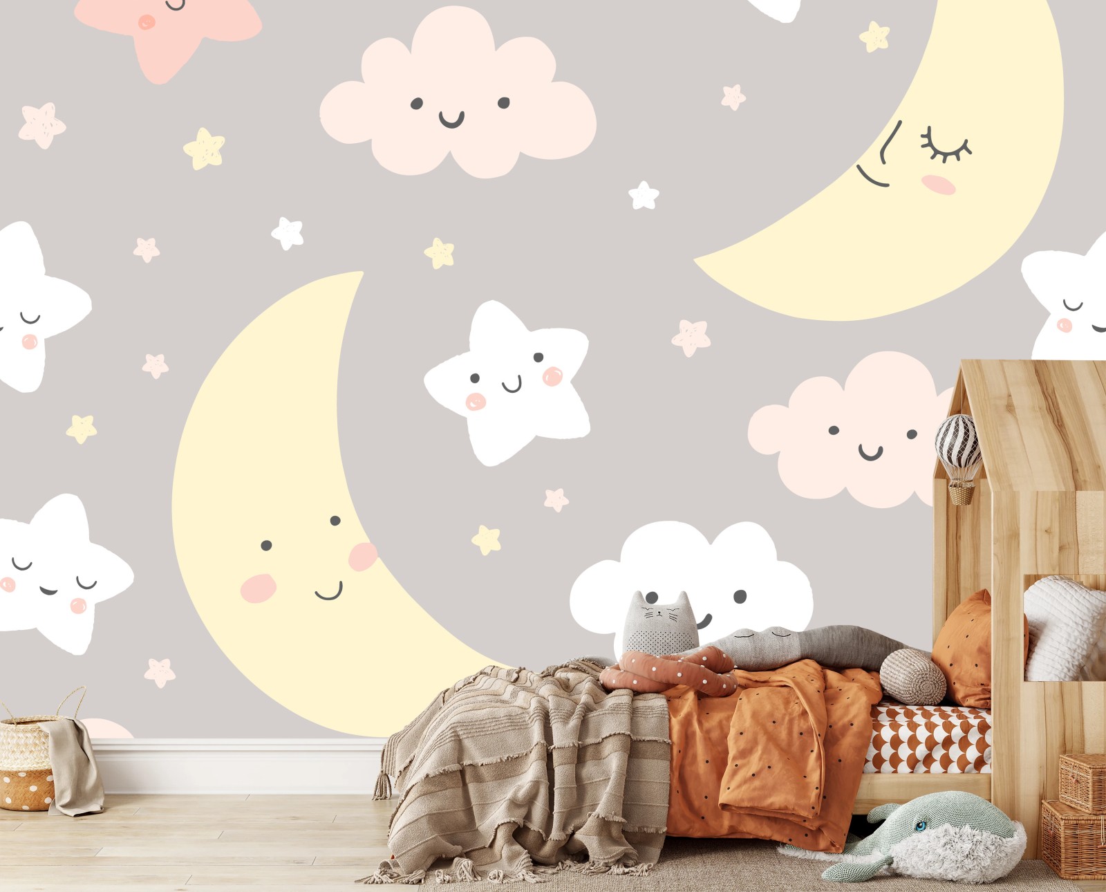 Fototapeta Senny księżyc i gwiazdki wzór do pokoju dziecięcego