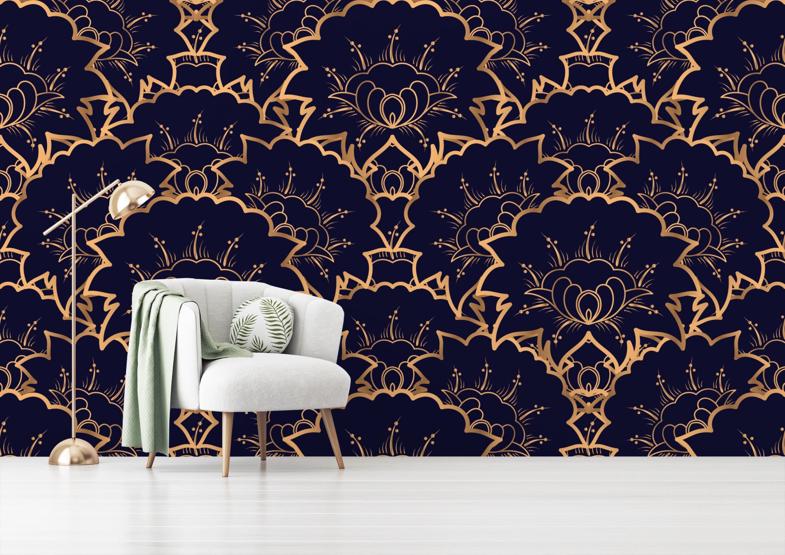 Fototapeta Luksusowy złoty wzór kwiatowy na granacie