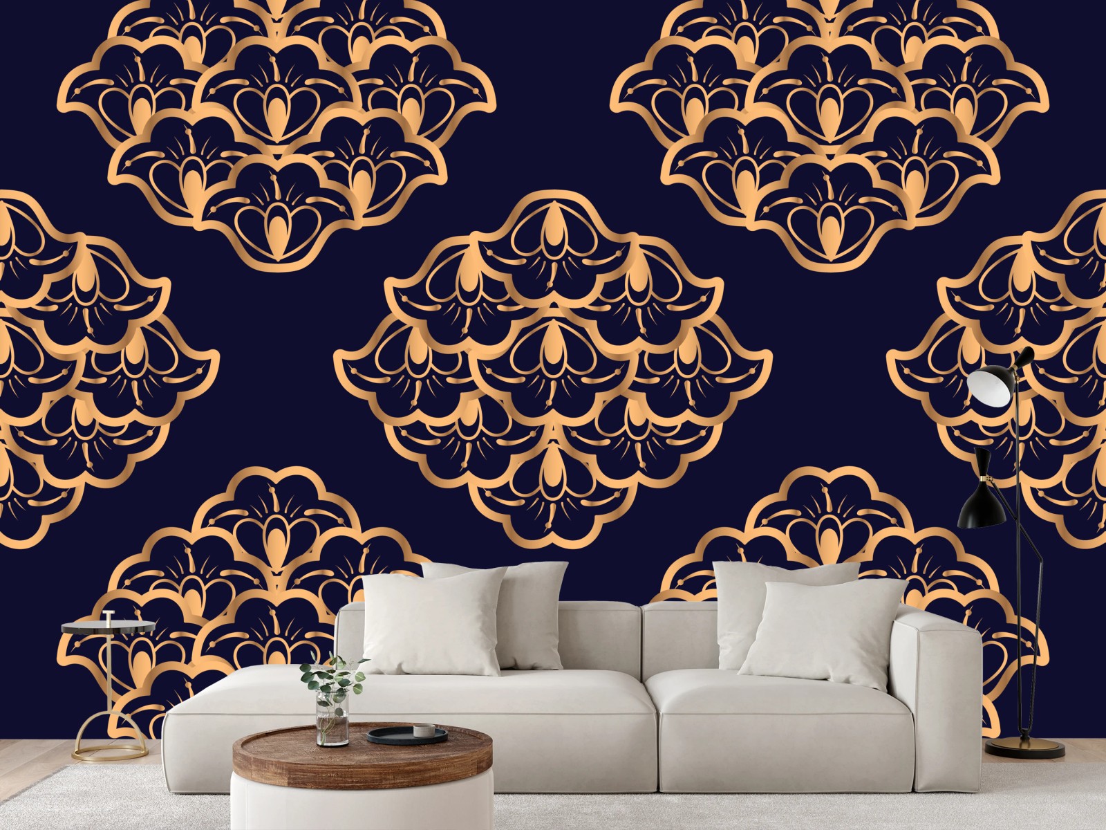 Fototapeta Złoty wzór damaskowy na granatowym tle