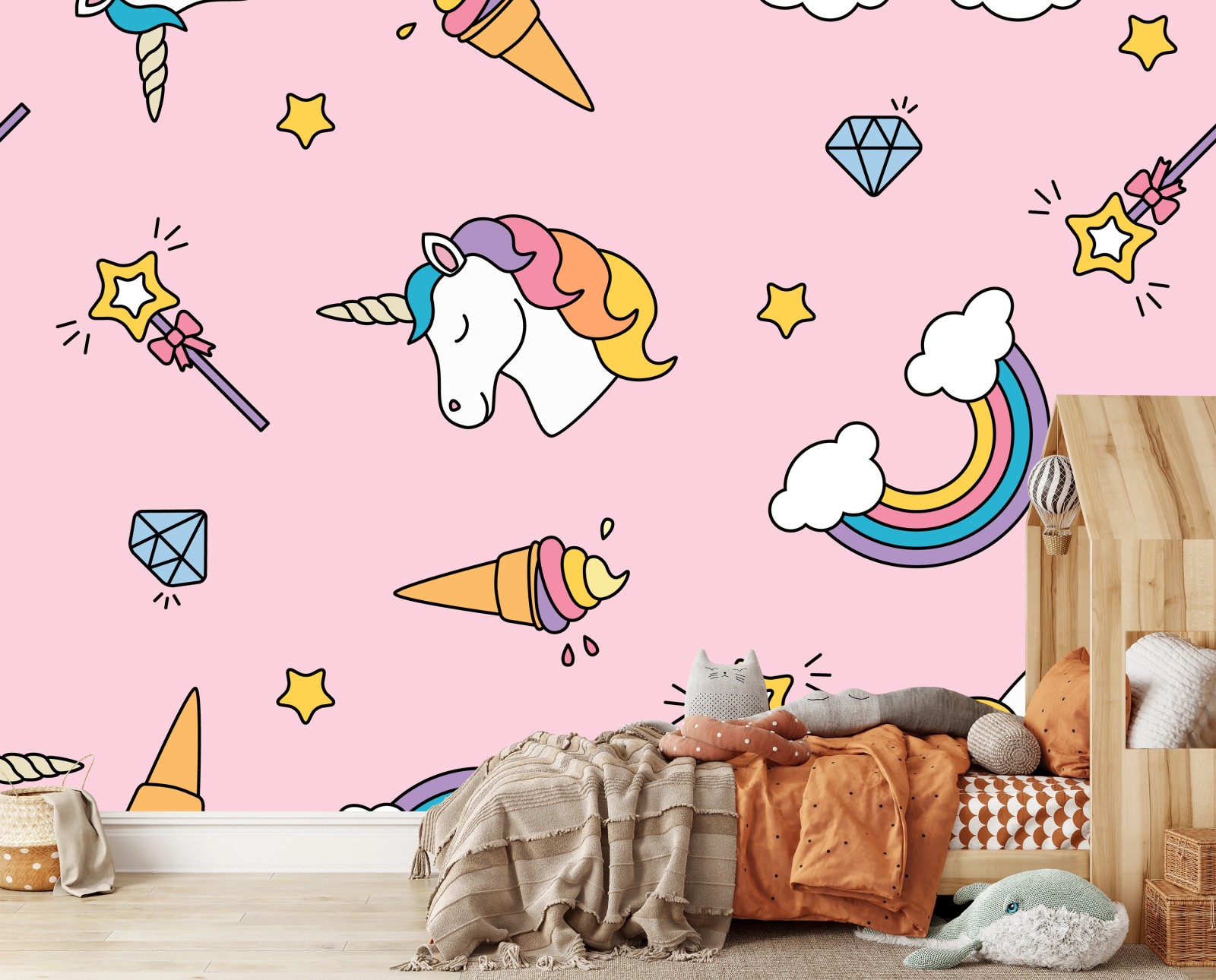 Fototapeta Pastelowy wzór z jednorożcami i tęczami