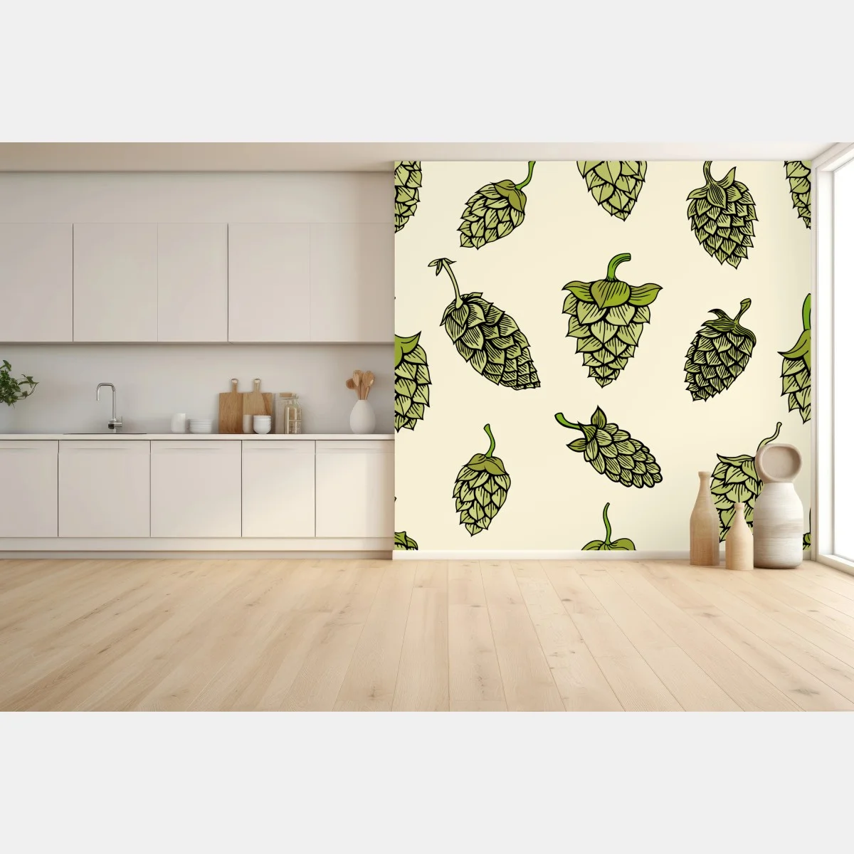 - ilustracja, piwo, botaniczny, tło, wzór, bezszwowy, zielony, browar, chmiel, rustykalny