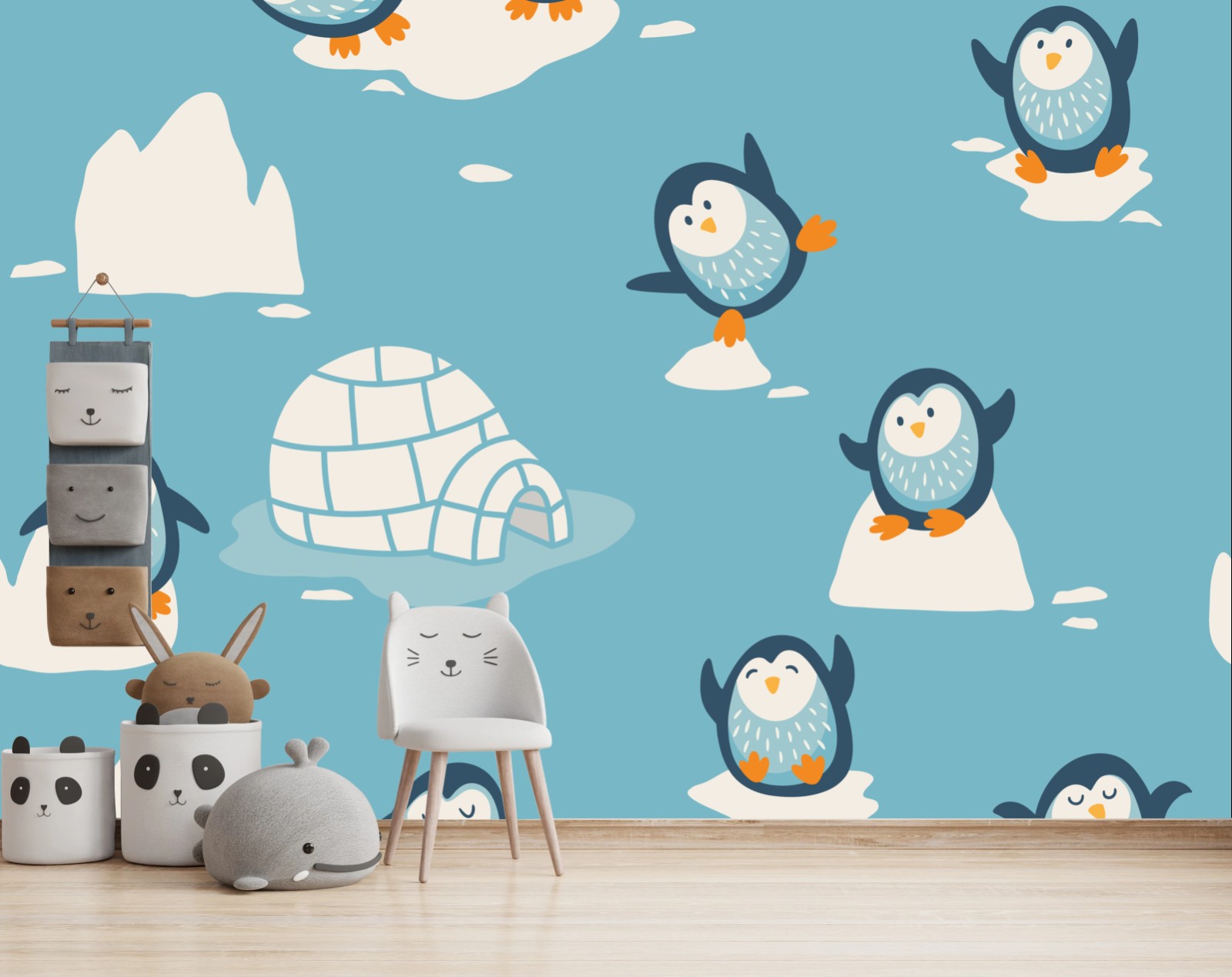 Fototapeta Zabawny wzór z pingwinami do pokoju dziecięcego