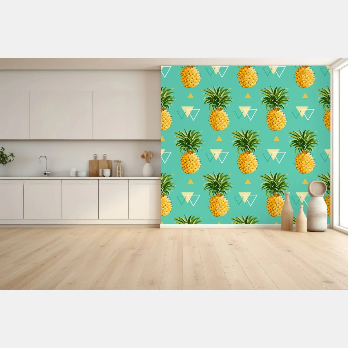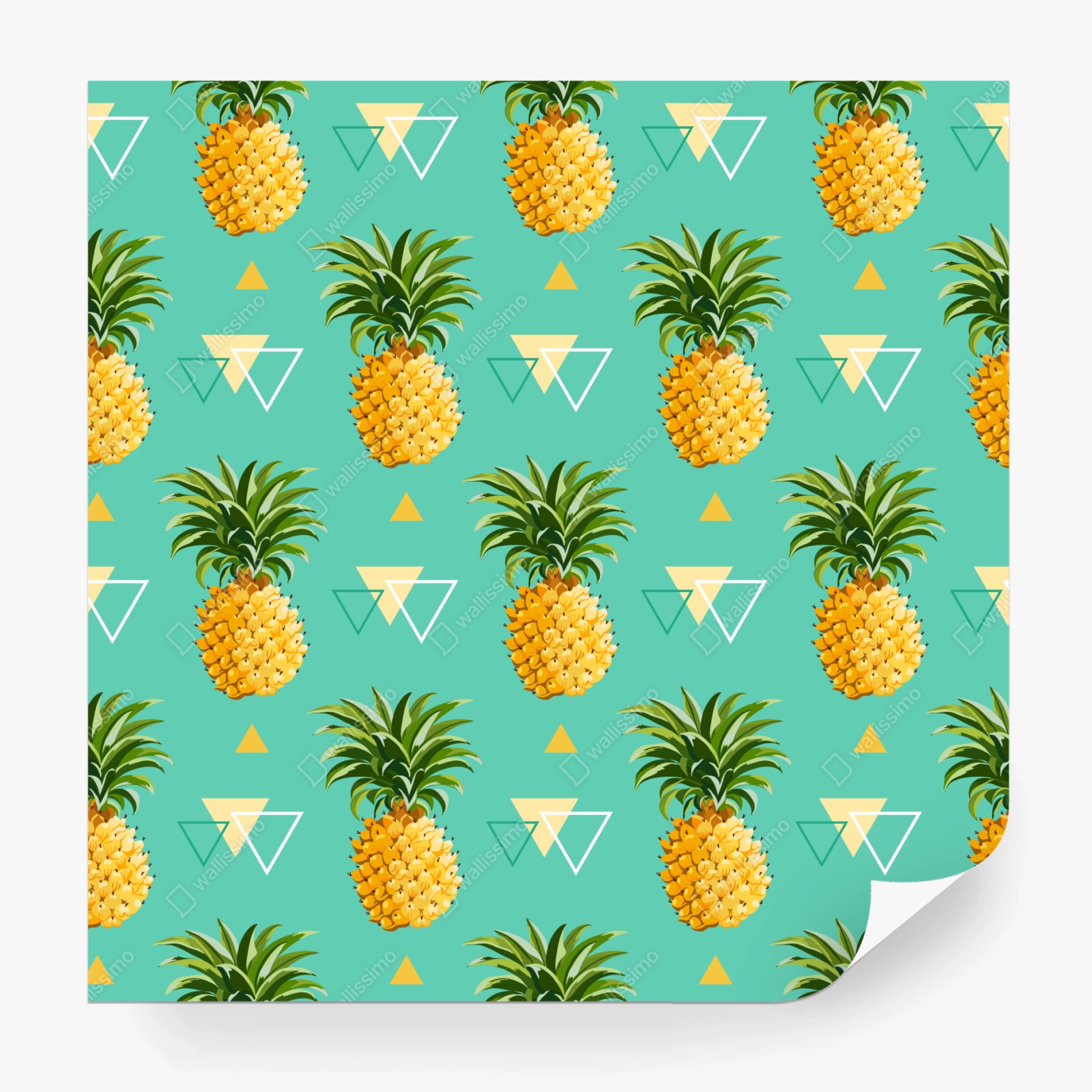 - ilustracja, turkusowy, geometryczny, dekoracyjny, wzór, tropikalny, bezszwowy, lato, ananas, owoc