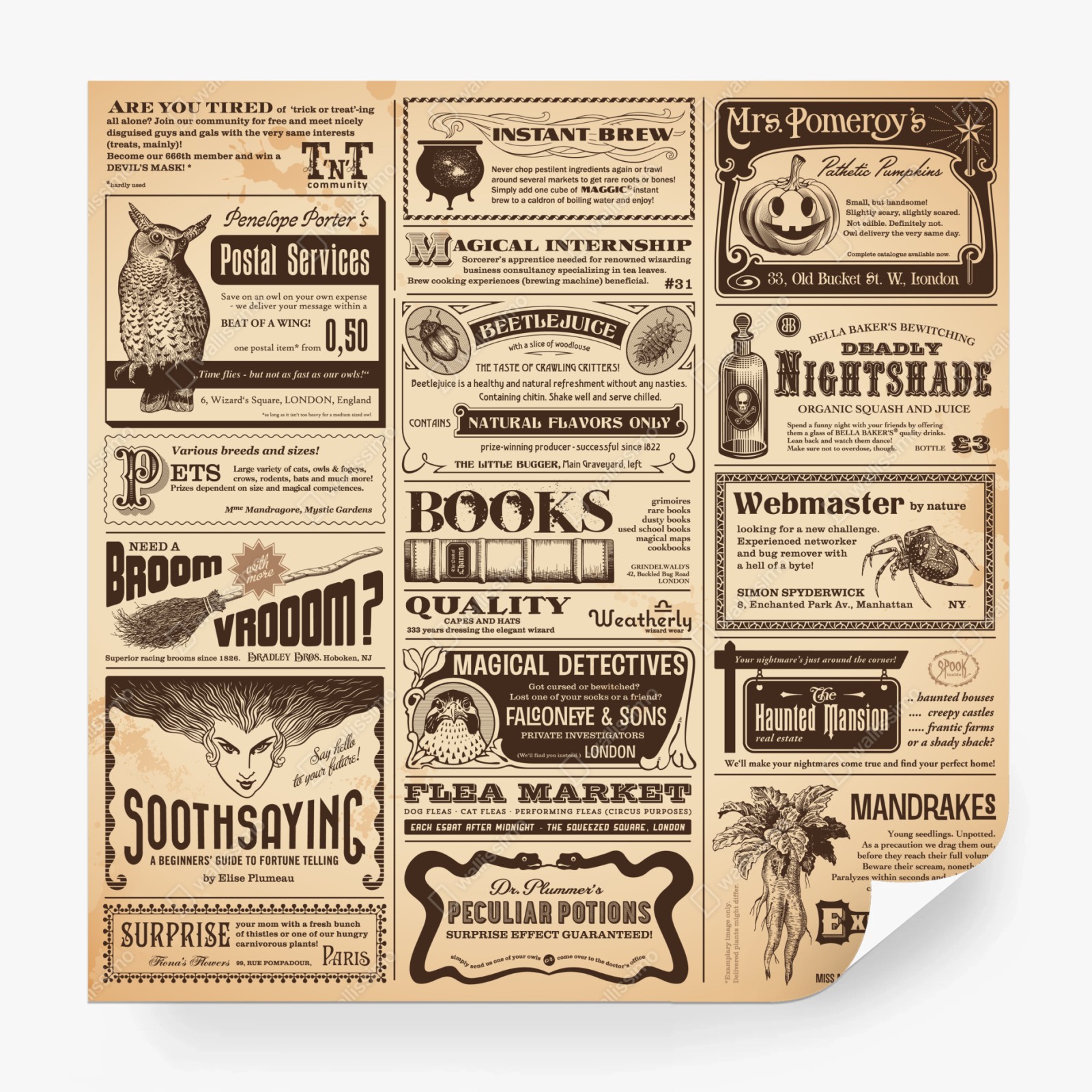 Fototapeta Kolaż starych magicznych ogłoszeń