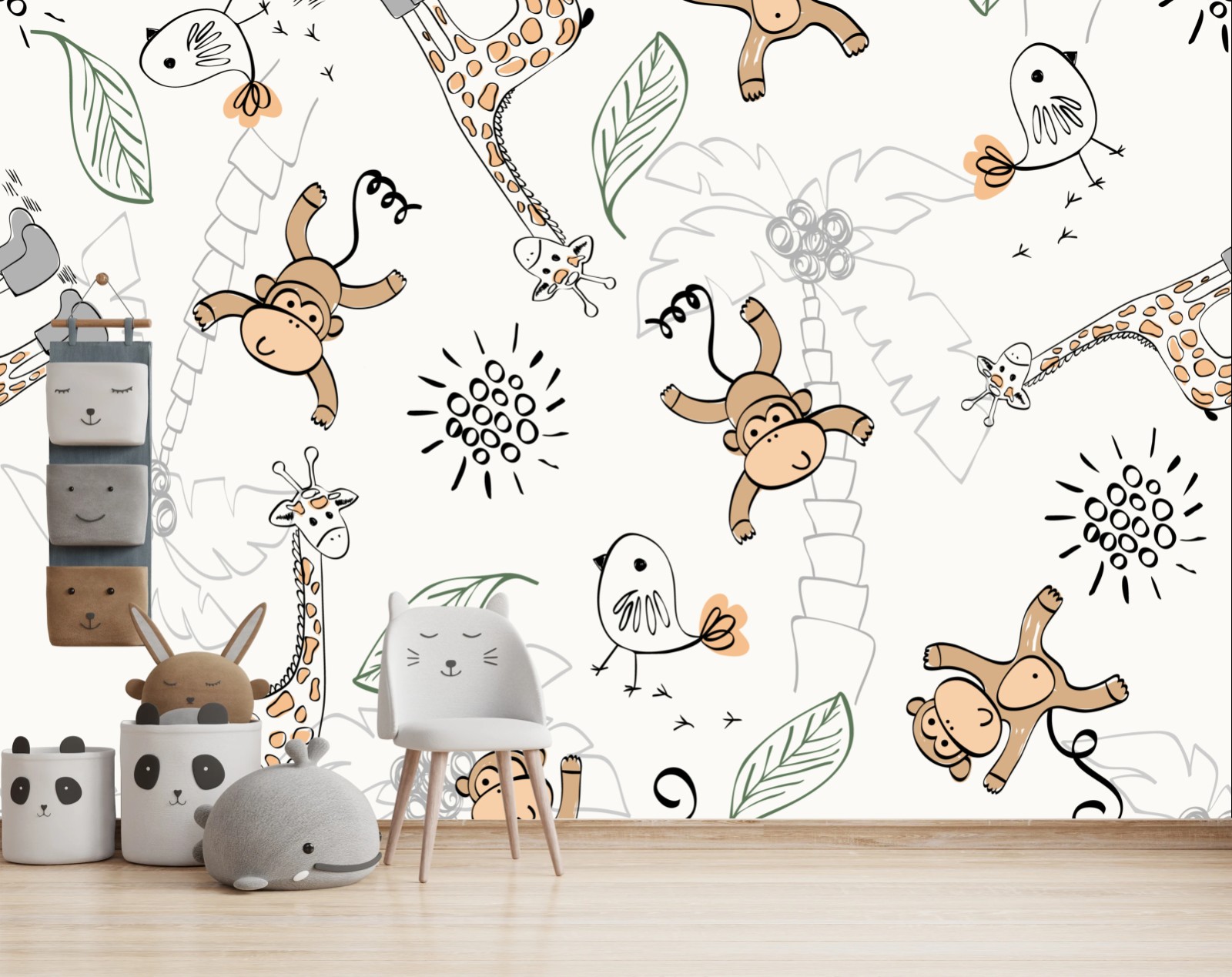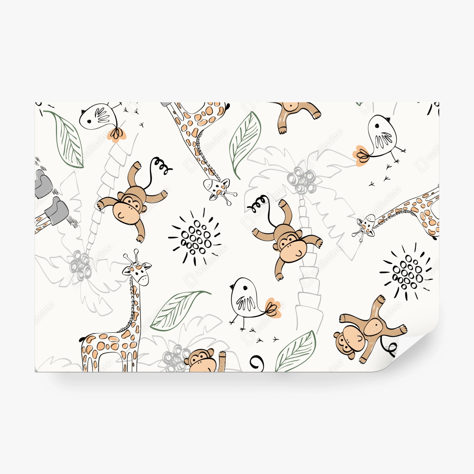 Fototapeta Urocze zwierzątka z dżungli wzór do pokoju dziecięcego