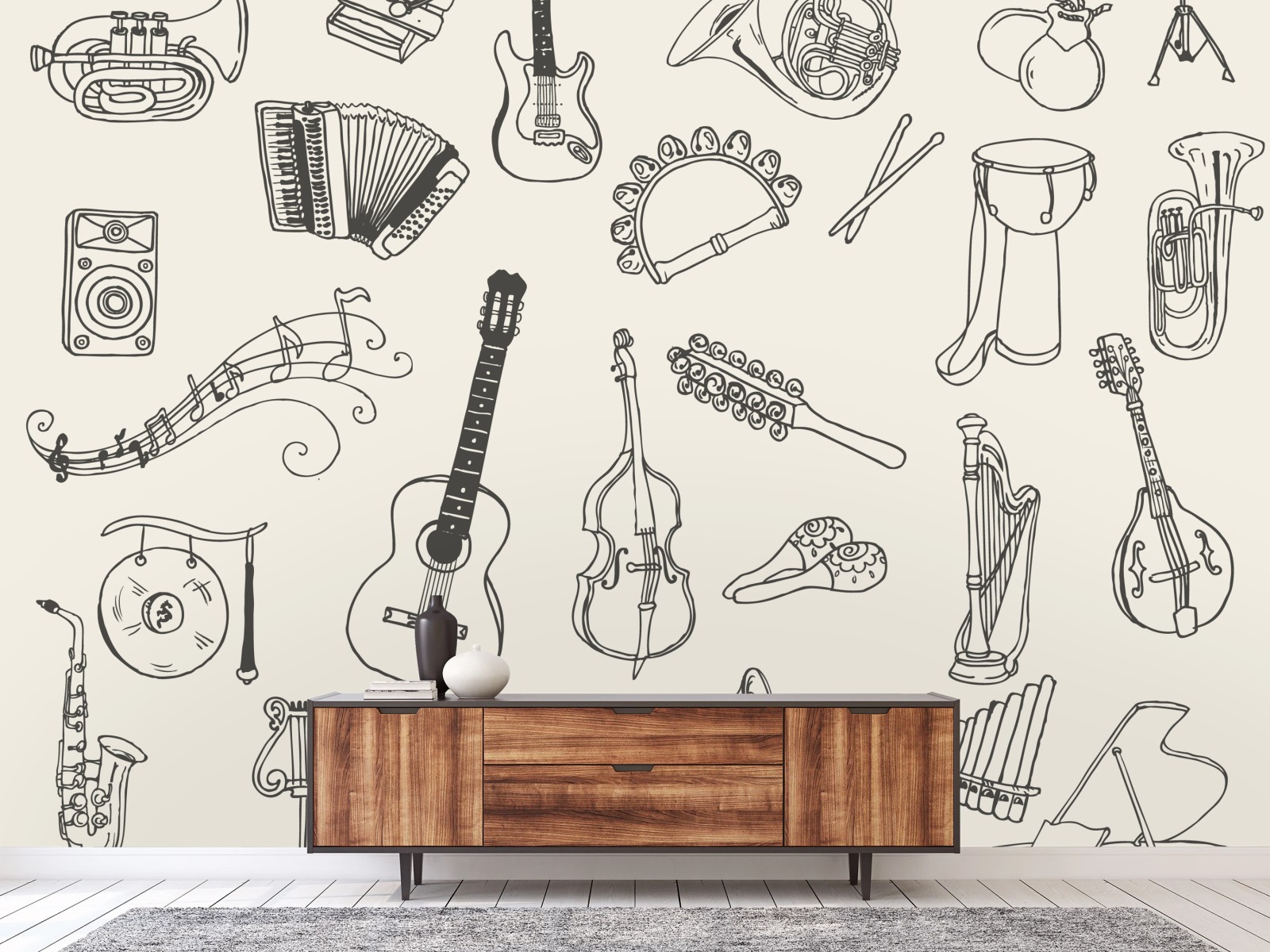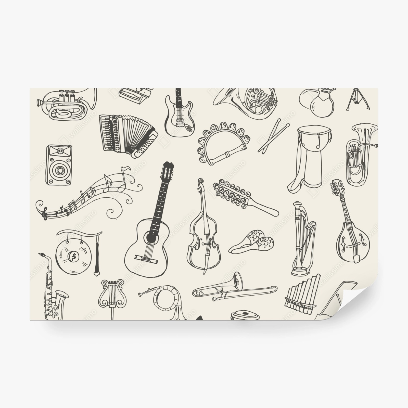 Fototapeta Ręcznie rysowane instrumenty muzyczne kolaż