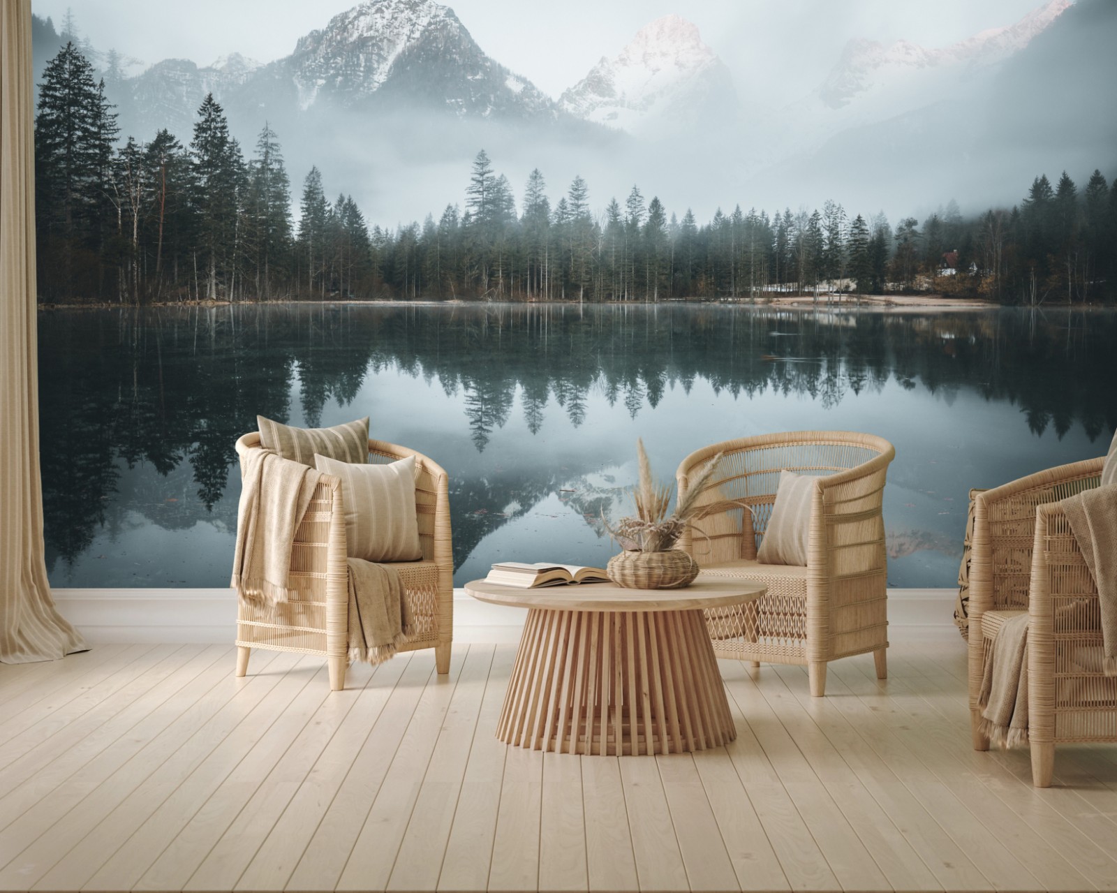 Fototapeta Mglista alpejska panorama nad jeziorem
