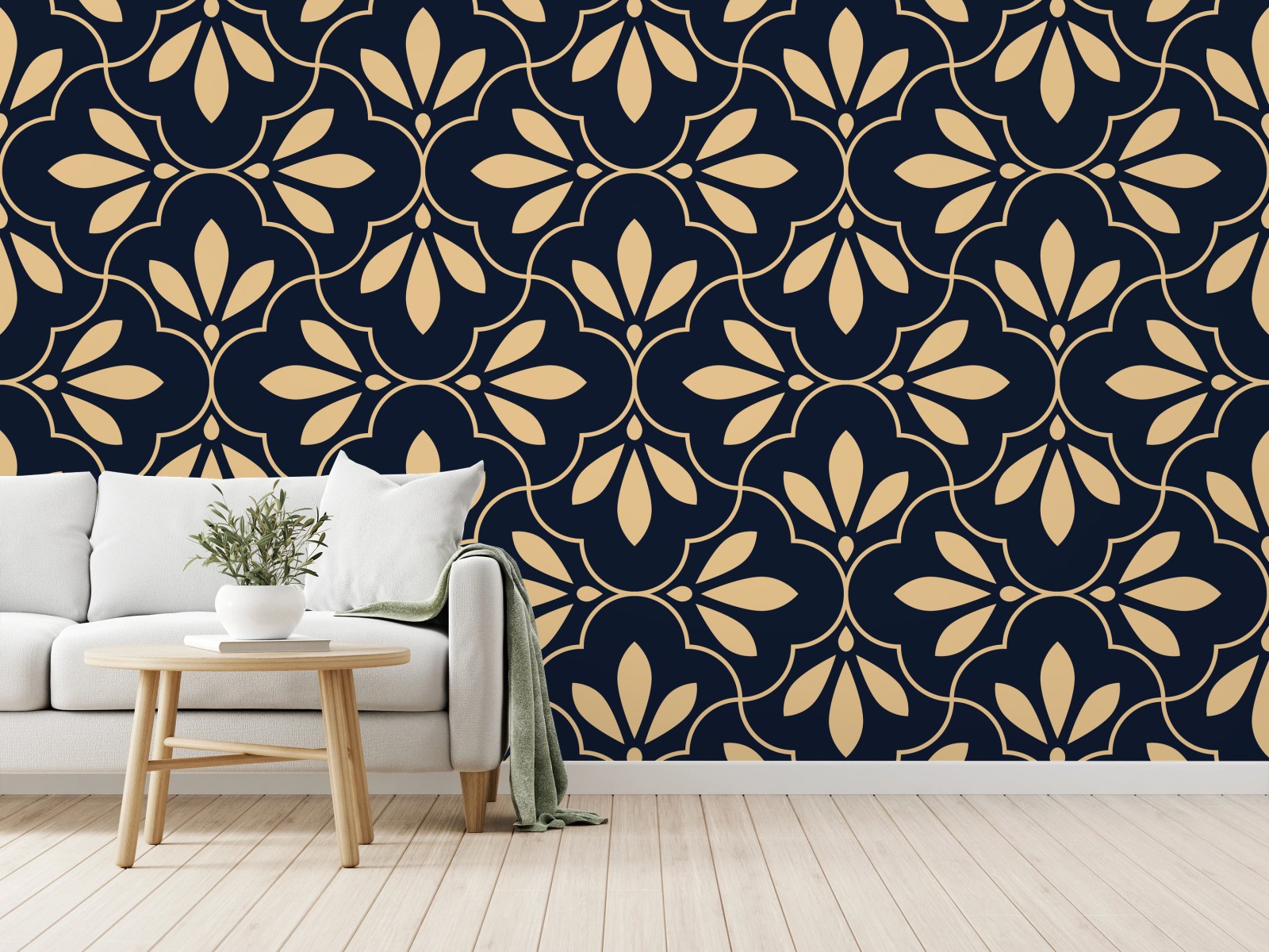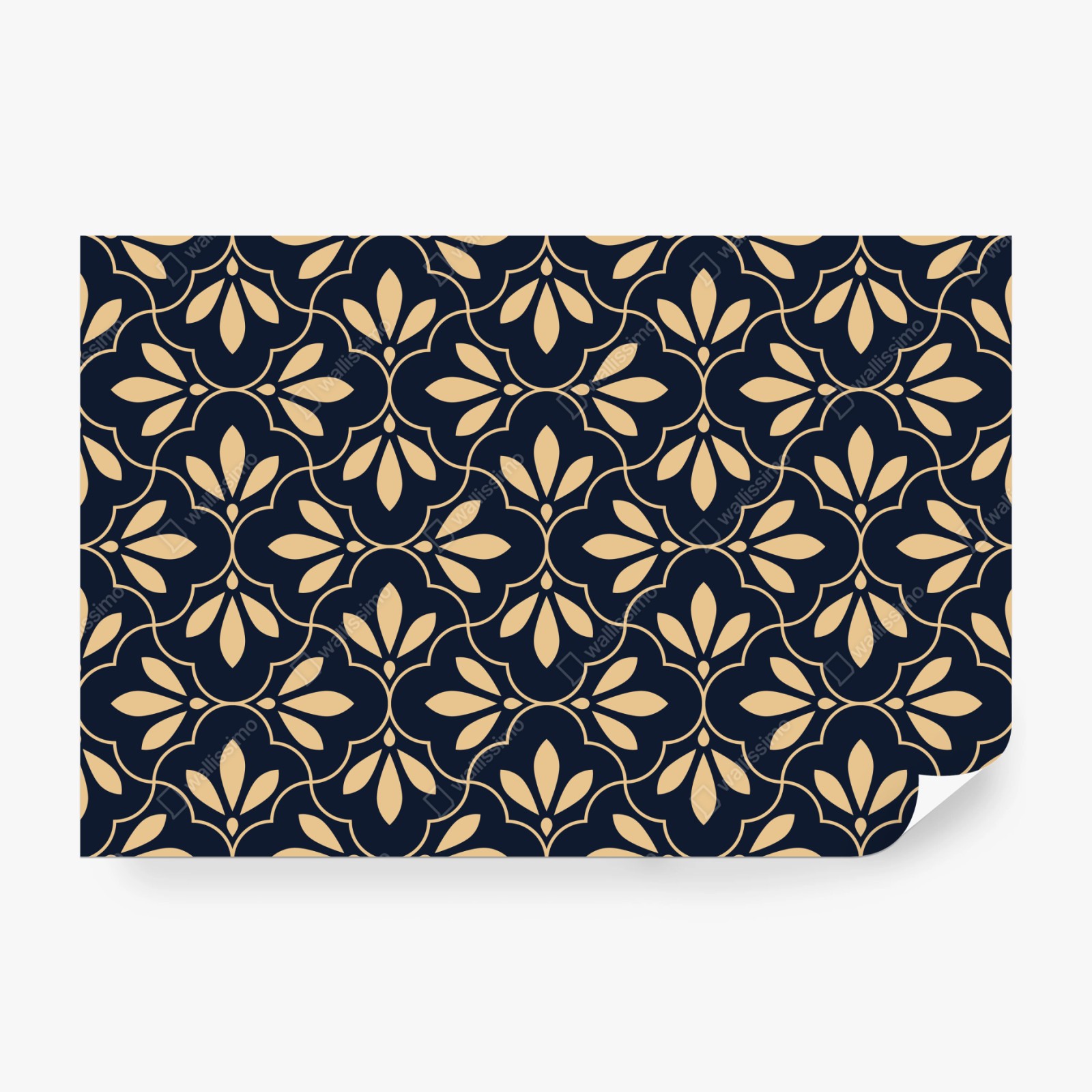 - ornament, geometryczny, dekoracyjny, tapeta, wzór, bezszwowy, beżowy, granatowy, klasyczny, arabeski