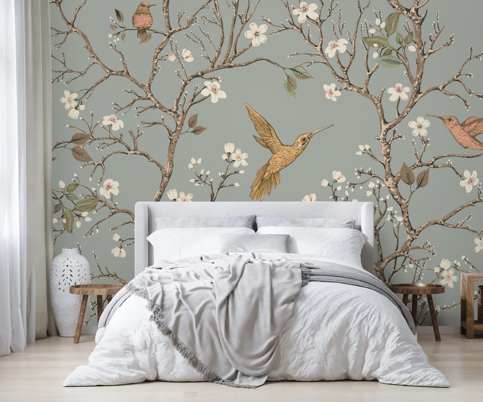 Fototapeta Vintage wzór kolibrów i kwiatów