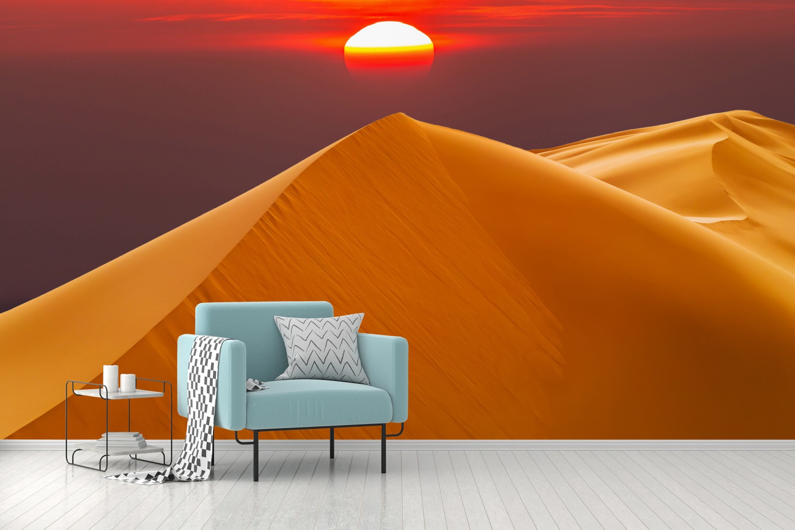 Fototapeta Złoty zachód słońca nad wydmami pustyni