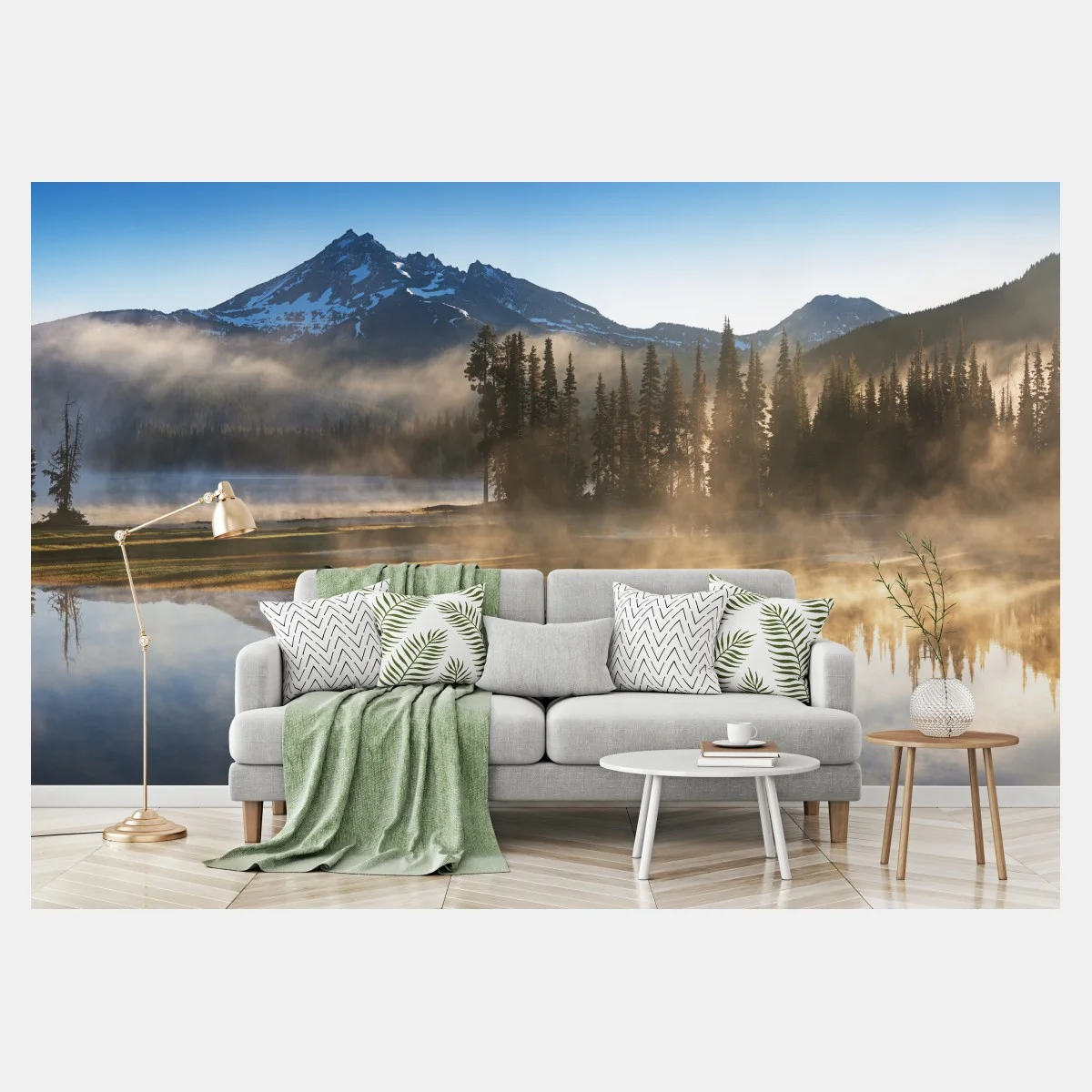 Fototapeta Mglista góra odbita w jeziorze o świcie