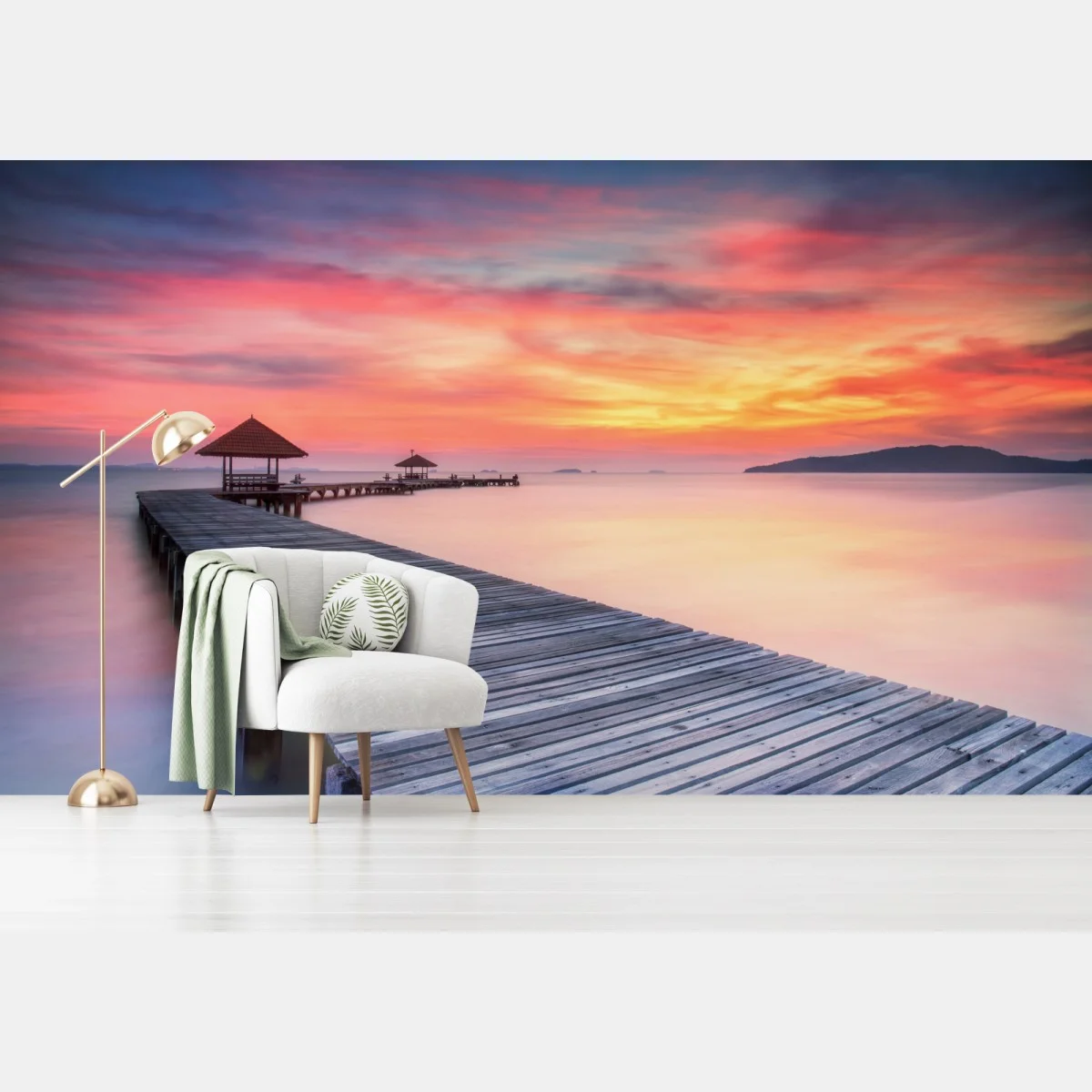 Fototapeta Spokojny wschód słońca nad drewnianym molo