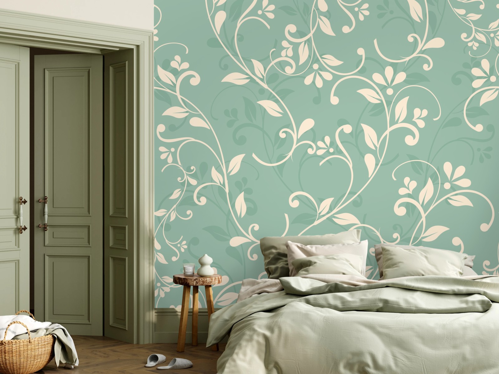 Fototapeta Miętowy kwiatowy wzór w stylu vintage