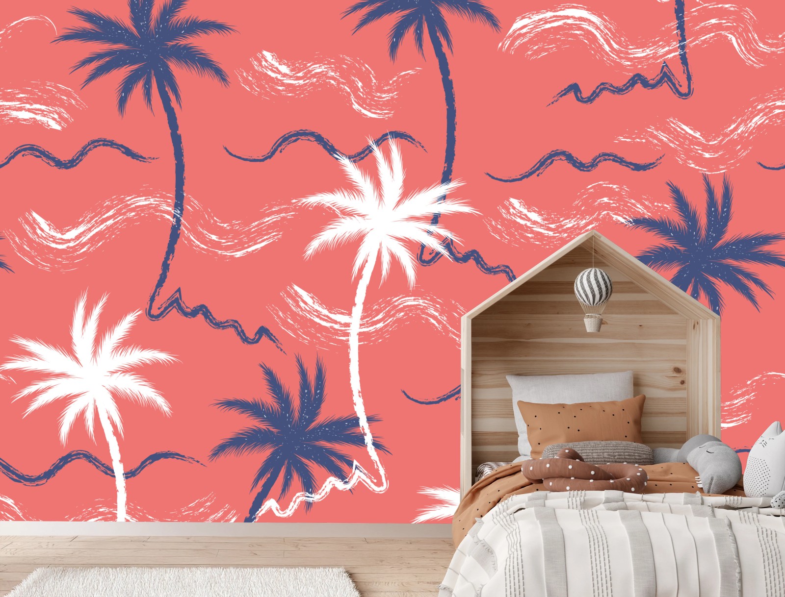 Fototapeta Tropikalny wzór palm w kolorze koralowym i granatowym