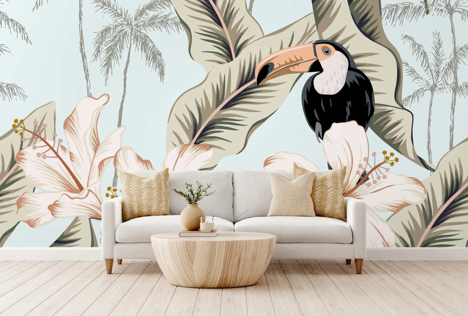 Fototapeta Tropikalny motyw z tukanem i hibiskusem