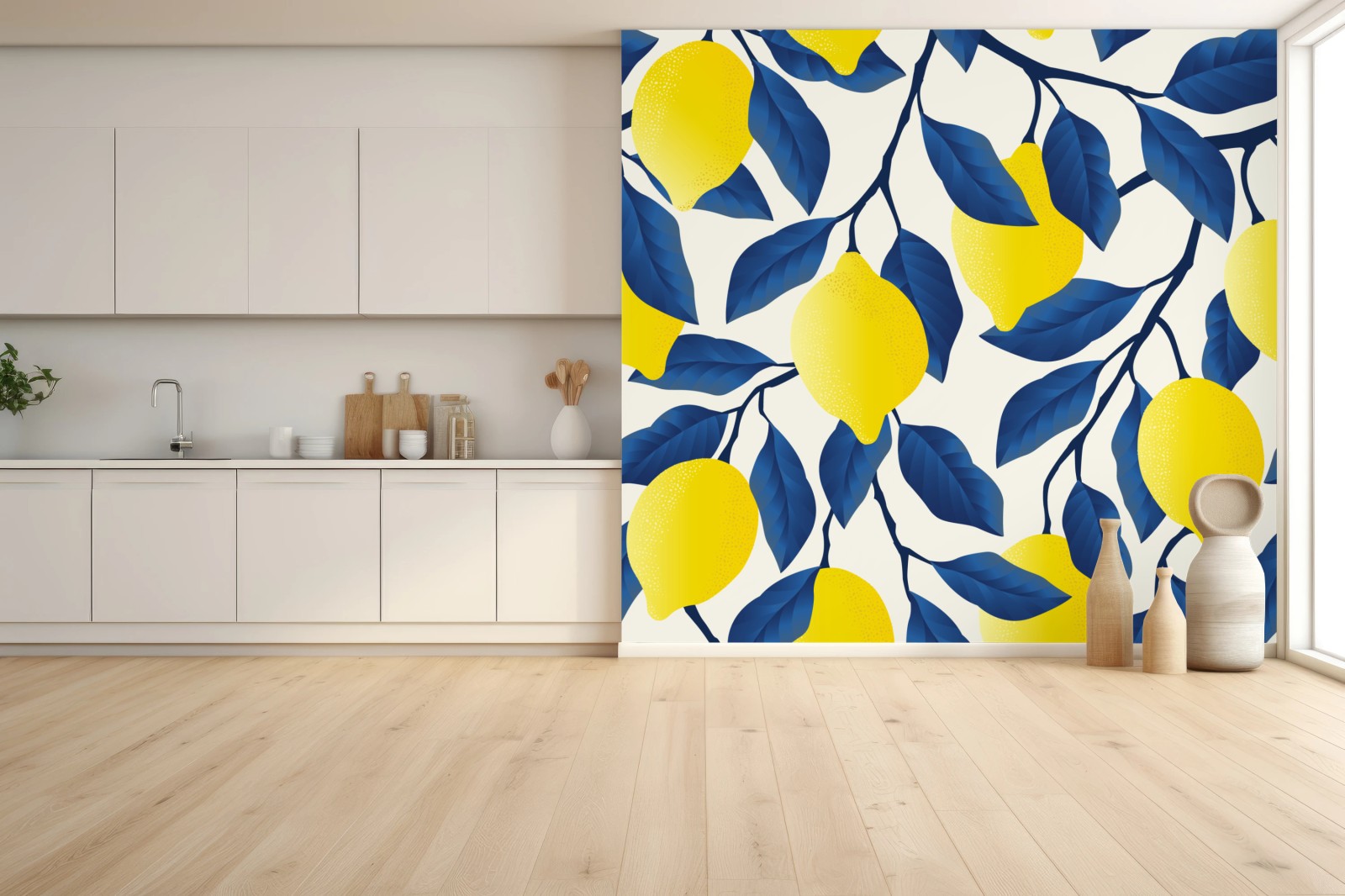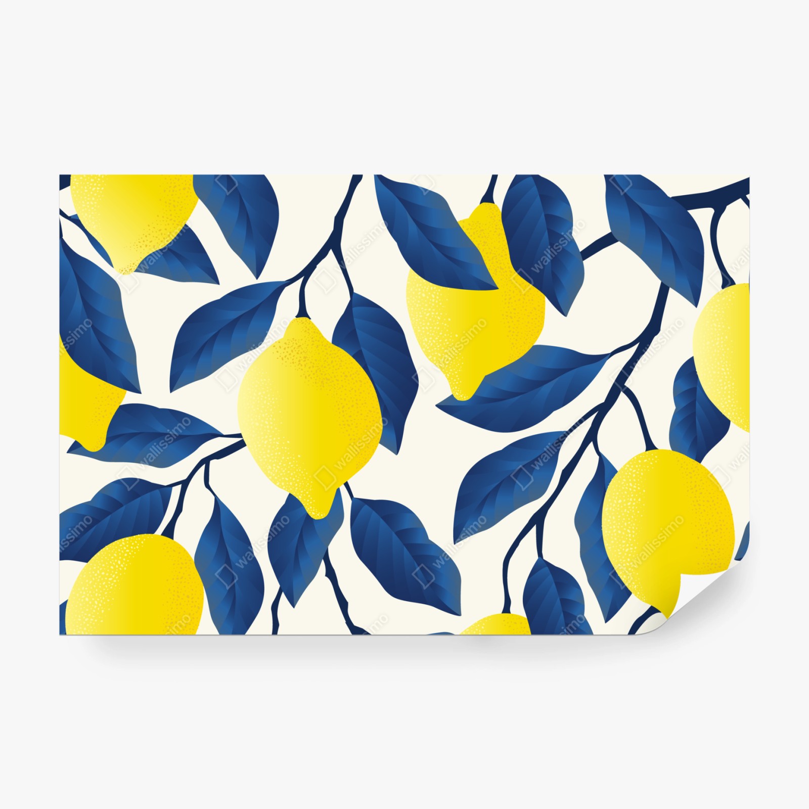 Fototapeta Żywy wzór cytryn z niebieskimi liśćmi