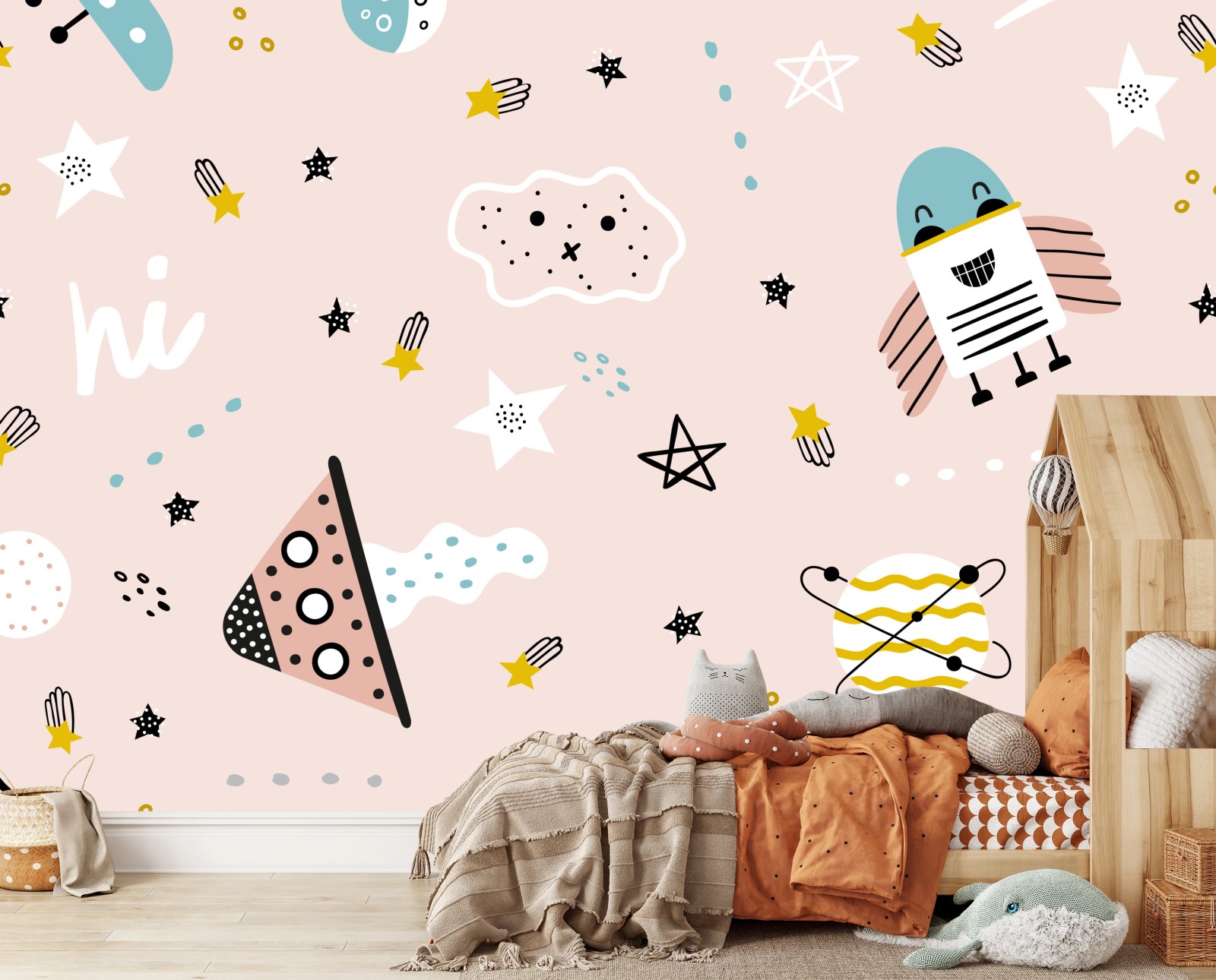 Fototapeta Zabawny pastelowy wzór kosmiczny dla dzieci