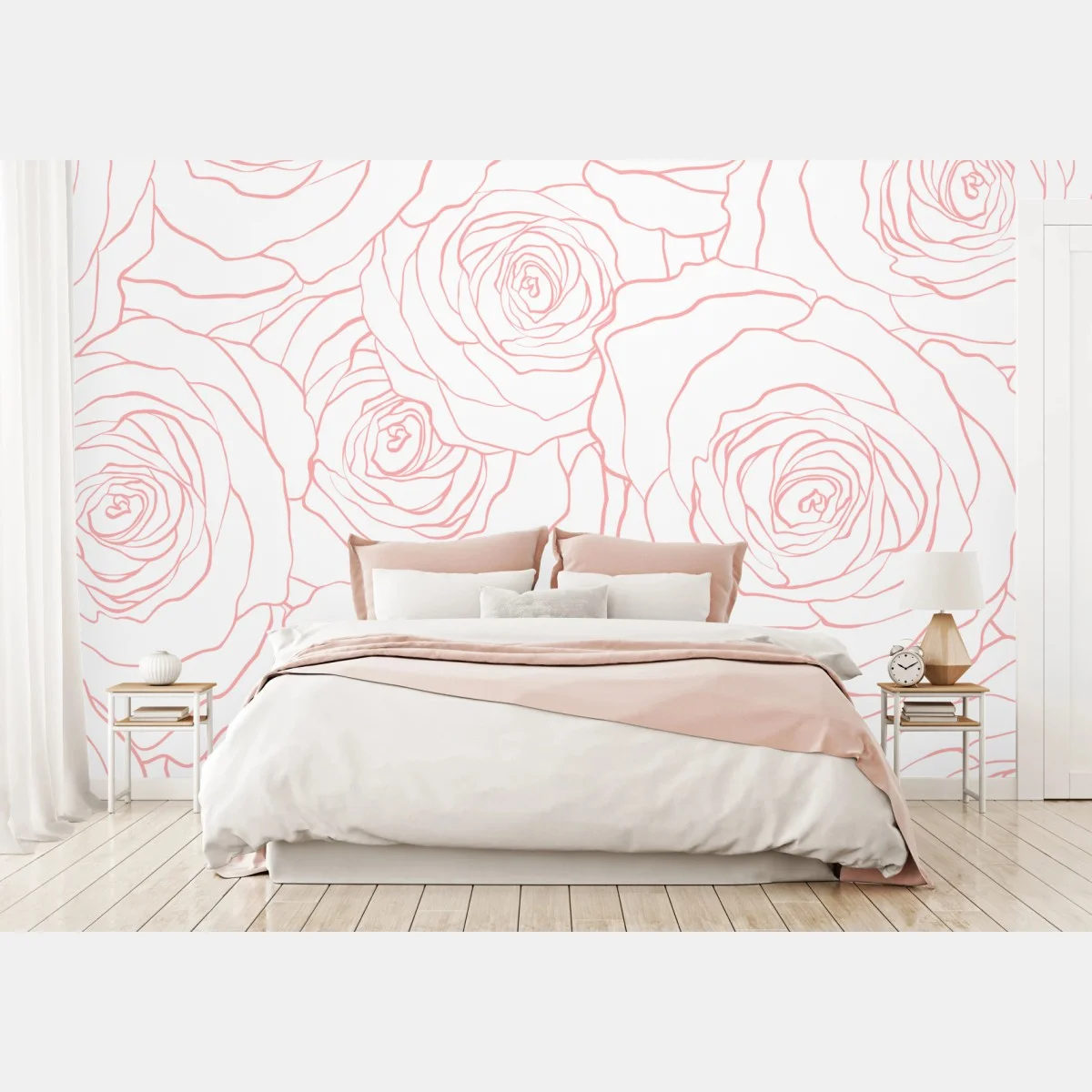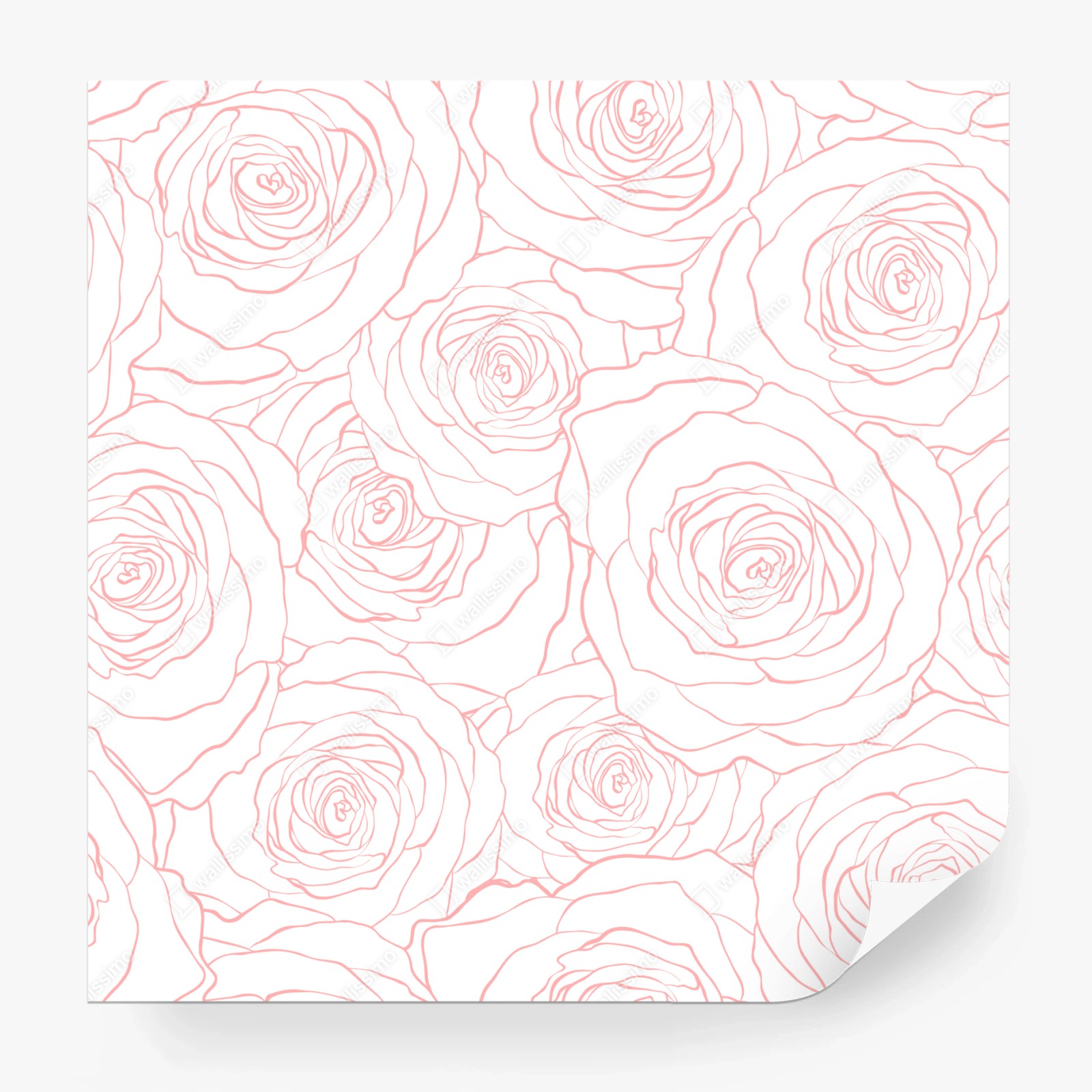 - botaniczny, tapeta, minimalistyczny, kwiatowy wzór, rysunek liniowy, pastelowy, wzór bez szwu, romantyczny, różowe róże, dekoracja do pokoju dziecięcego