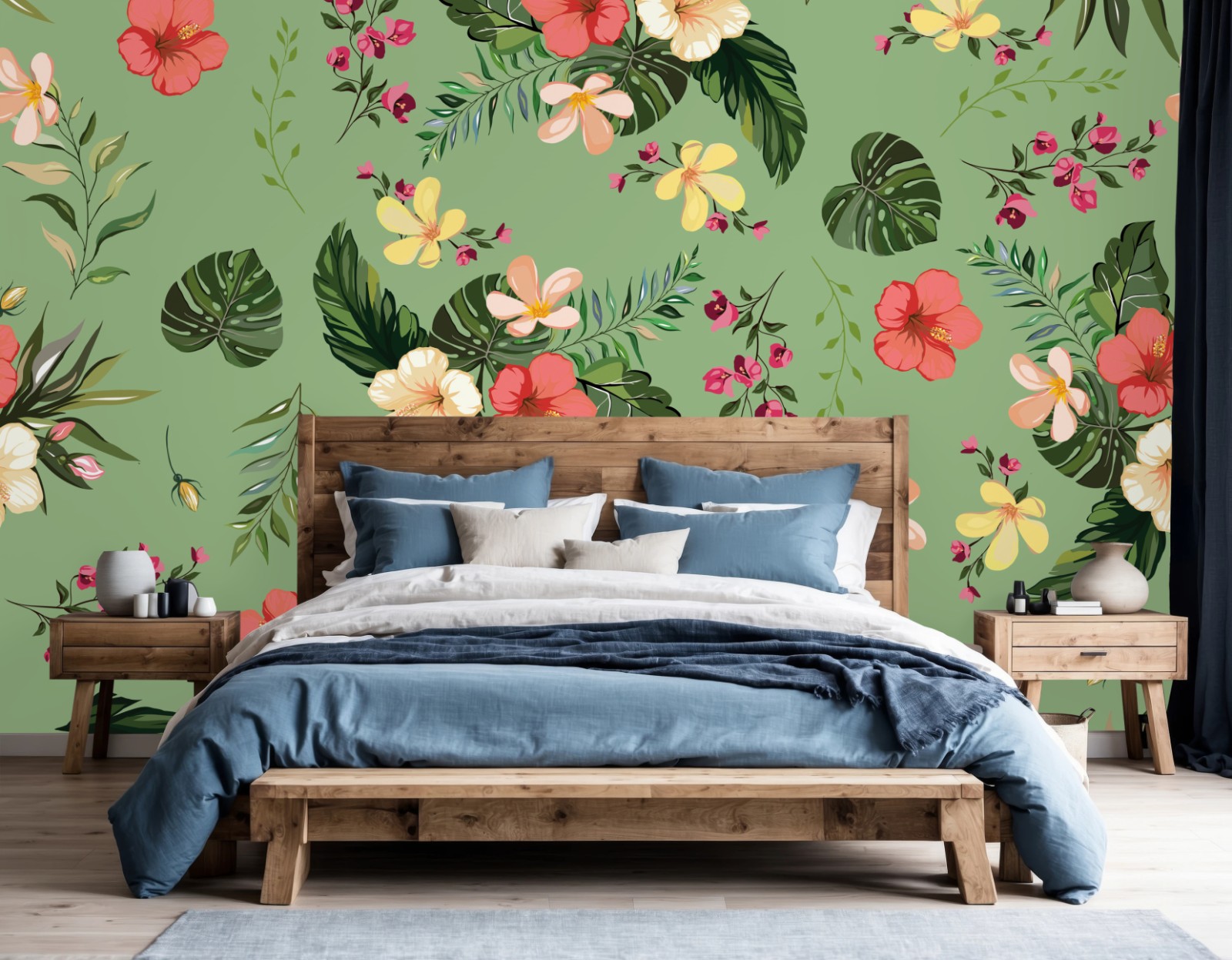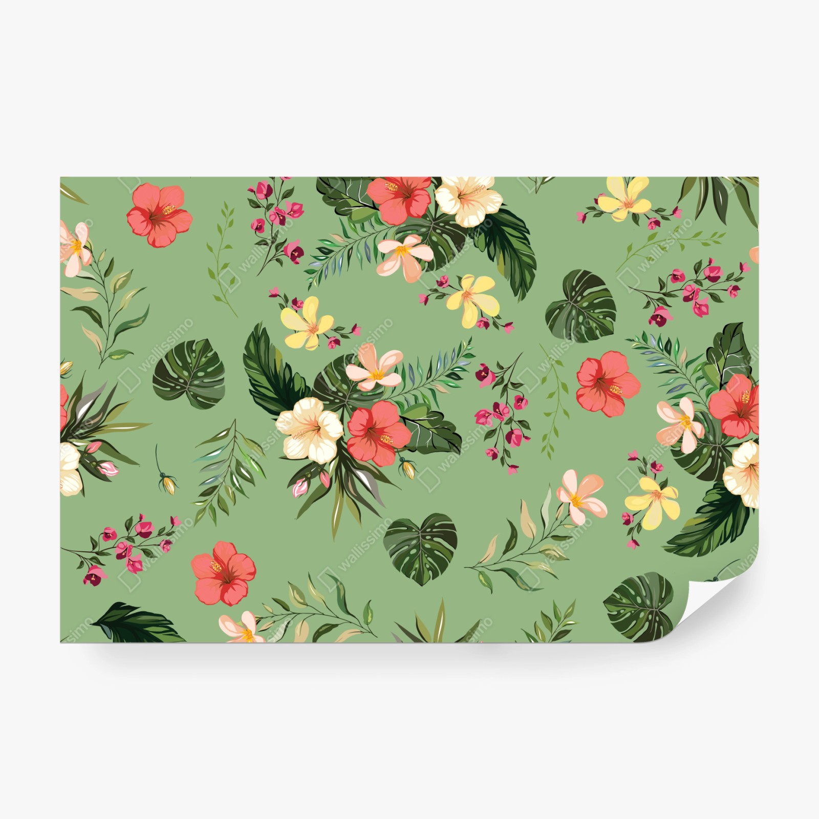 Fototapeta Zielony tropikalny wzór hibiskusa