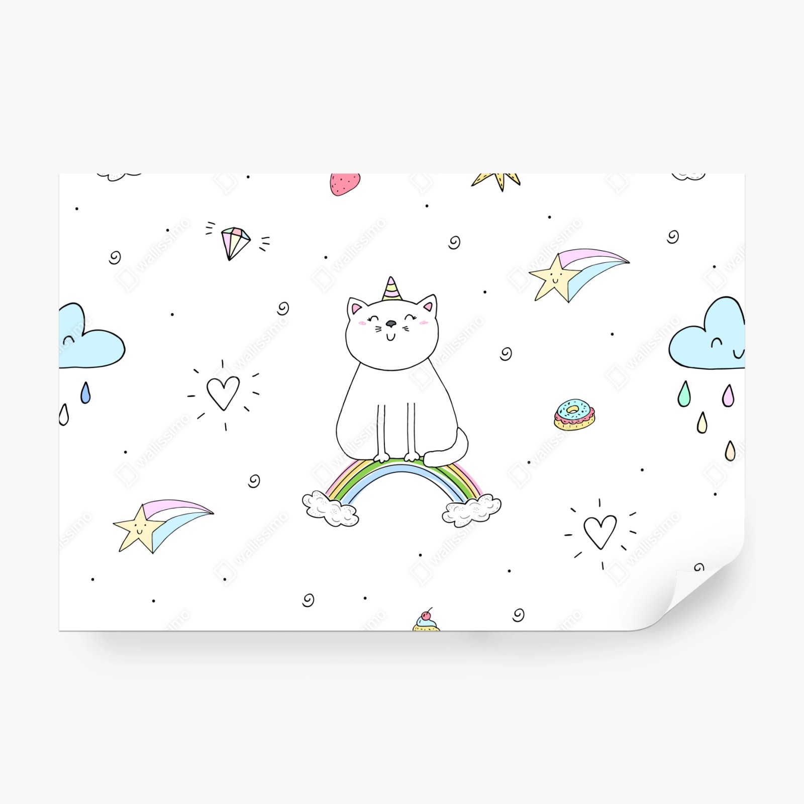 Fototapeta Pastelowy kot jednorożec na tęczy