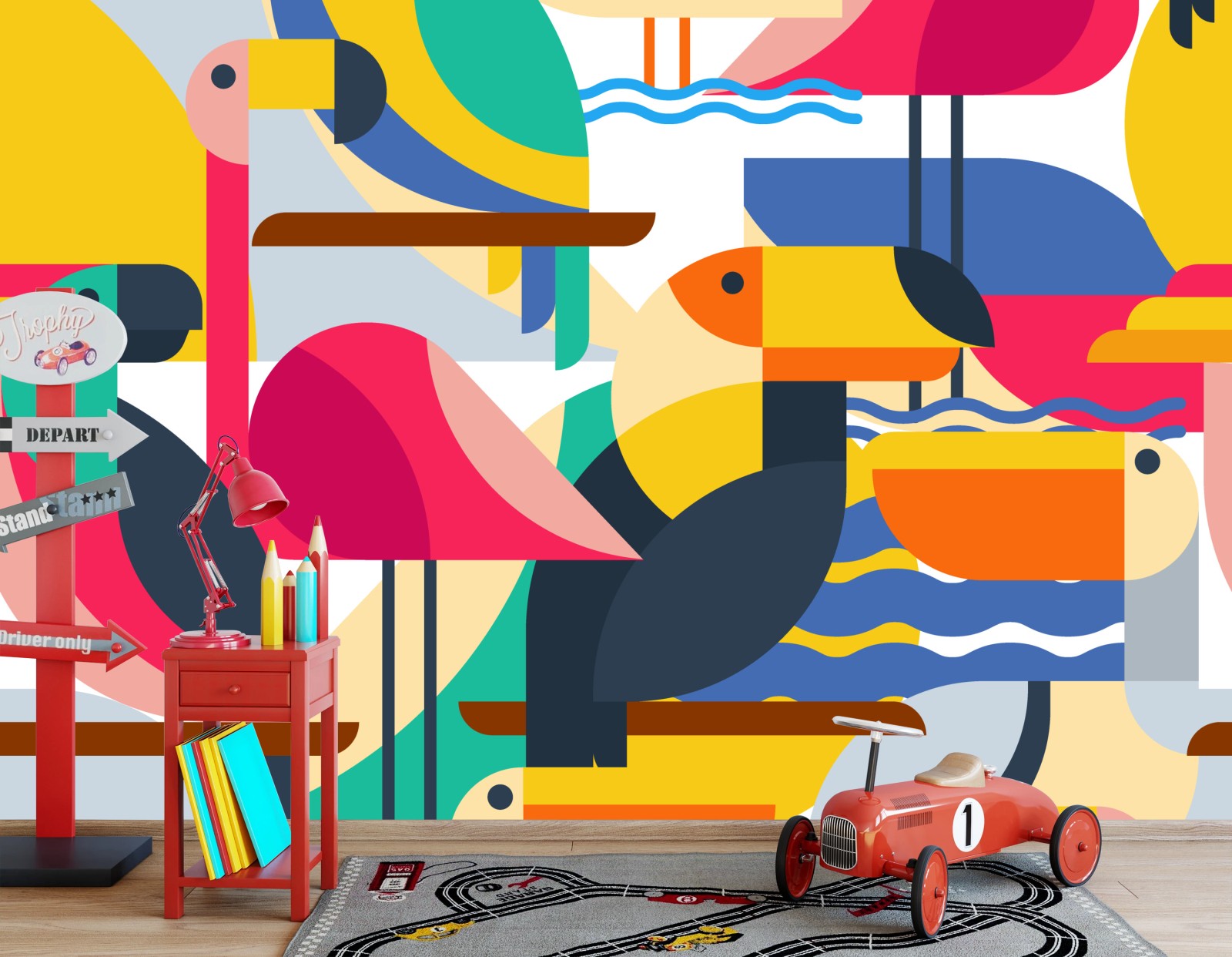 Fototapeta Tropikalny geometryczny wzór ptaków