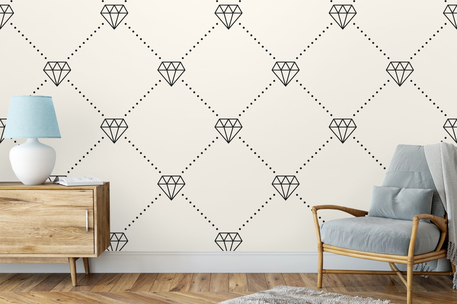 Fototapeta Wzór kratki z diamentami na beżowym tle