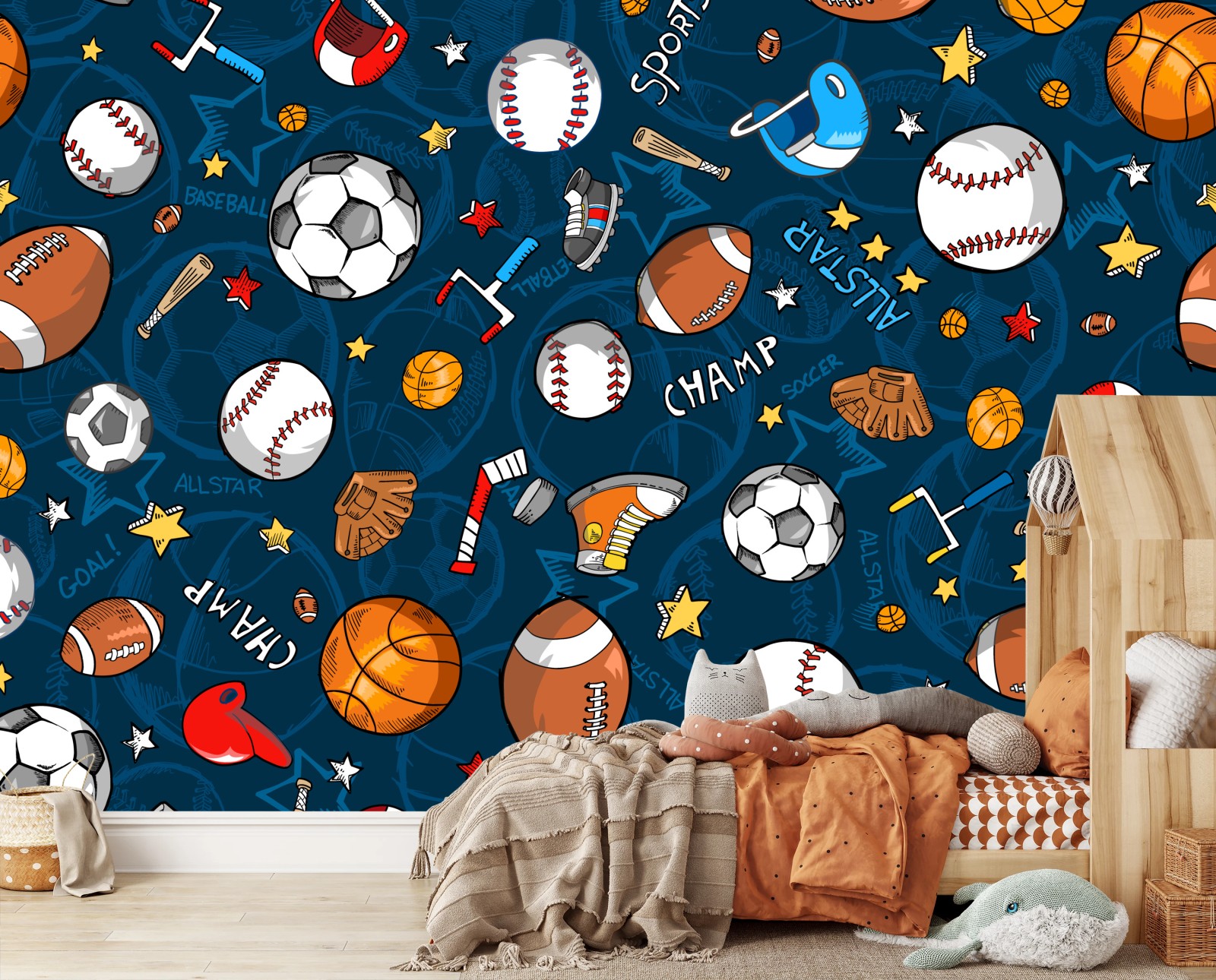 Fototapeta Zabawny wzór sportowy na granatowym tle