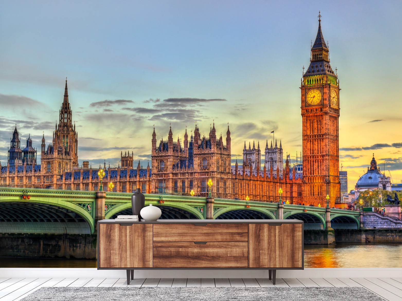 Fototapeta Zachód słońca nad Londynem: Big Ben i Pałac Westminsterski