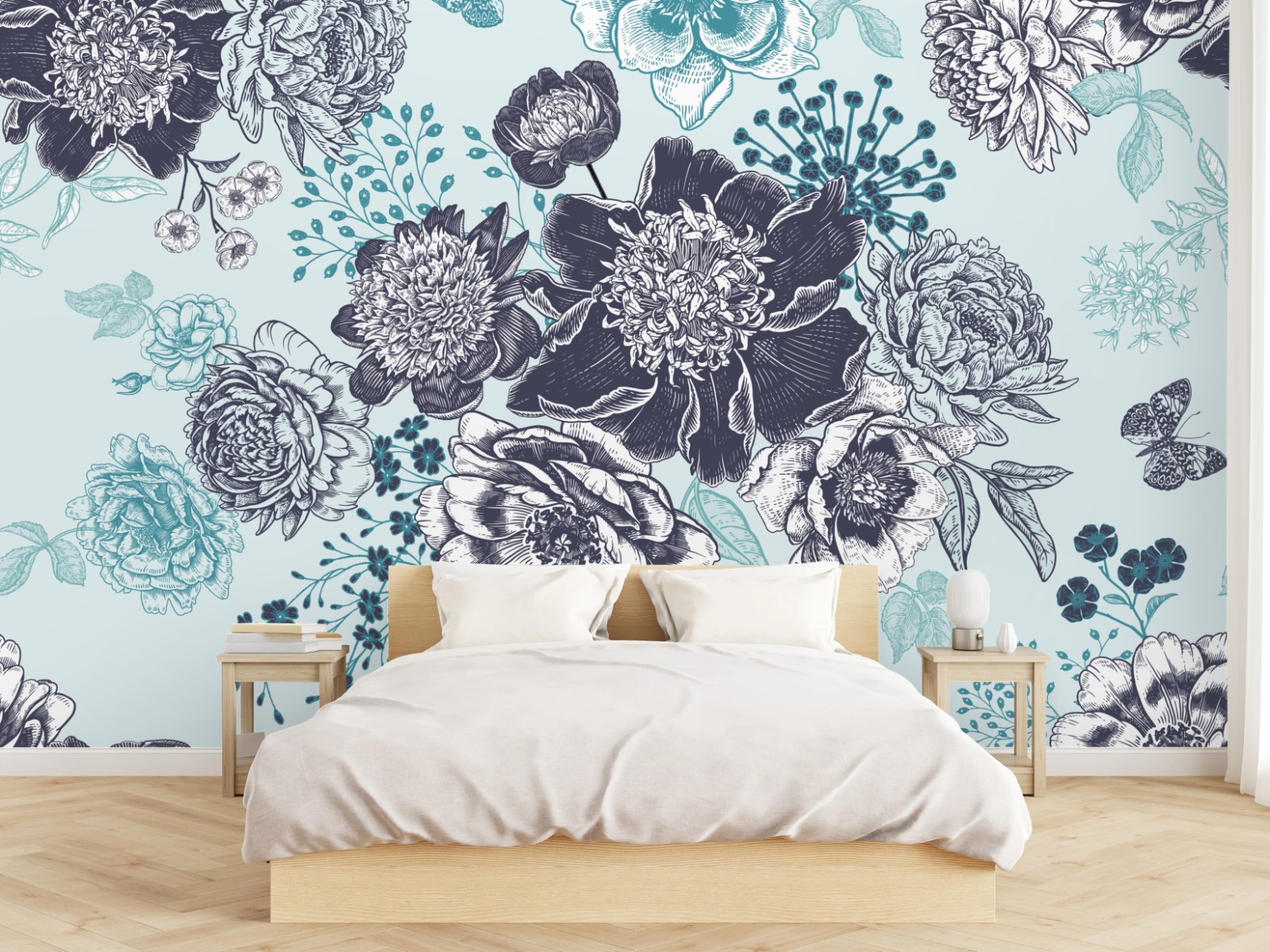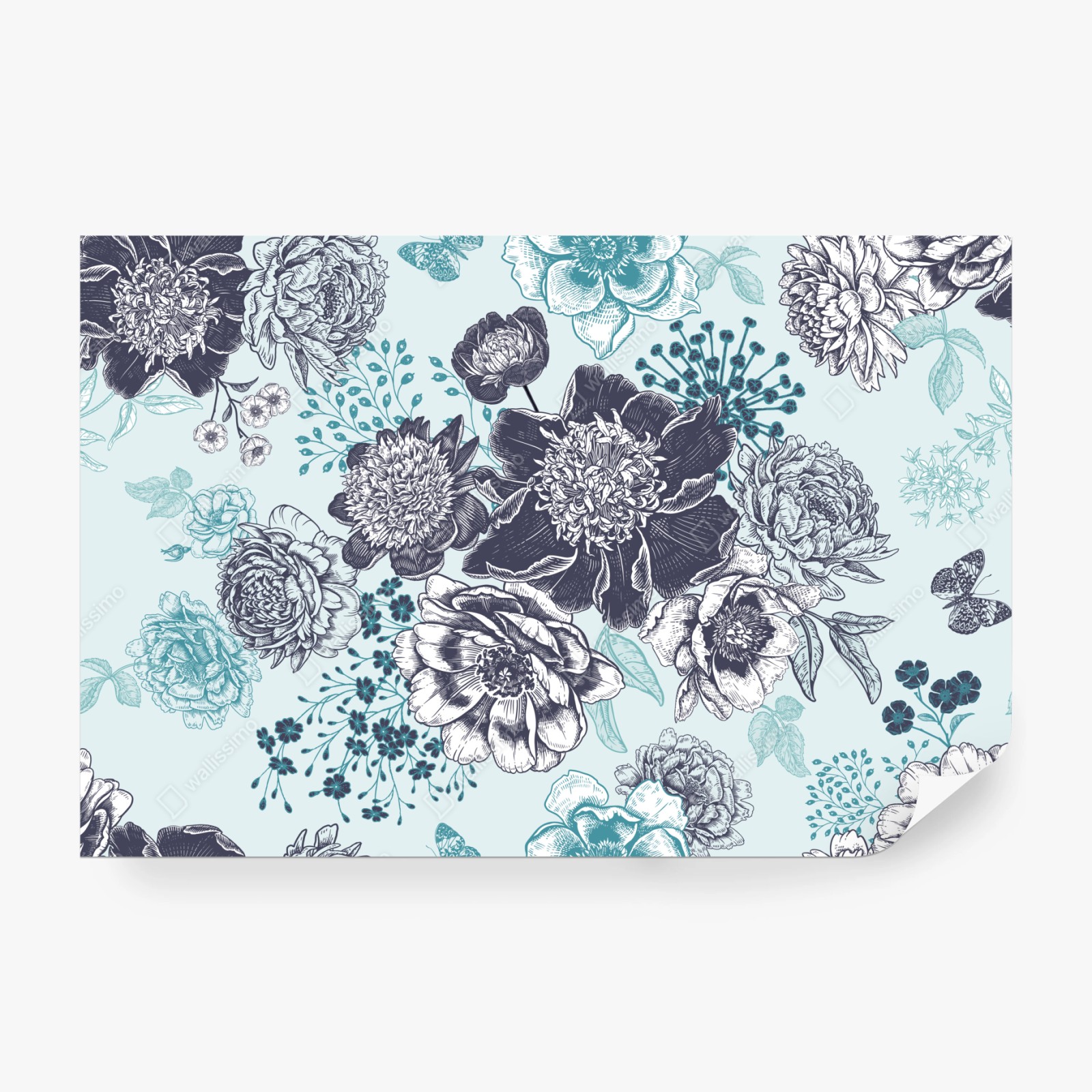Fototapeta Kwiatowy wzór peonii w odcieniach turkusu i granatu