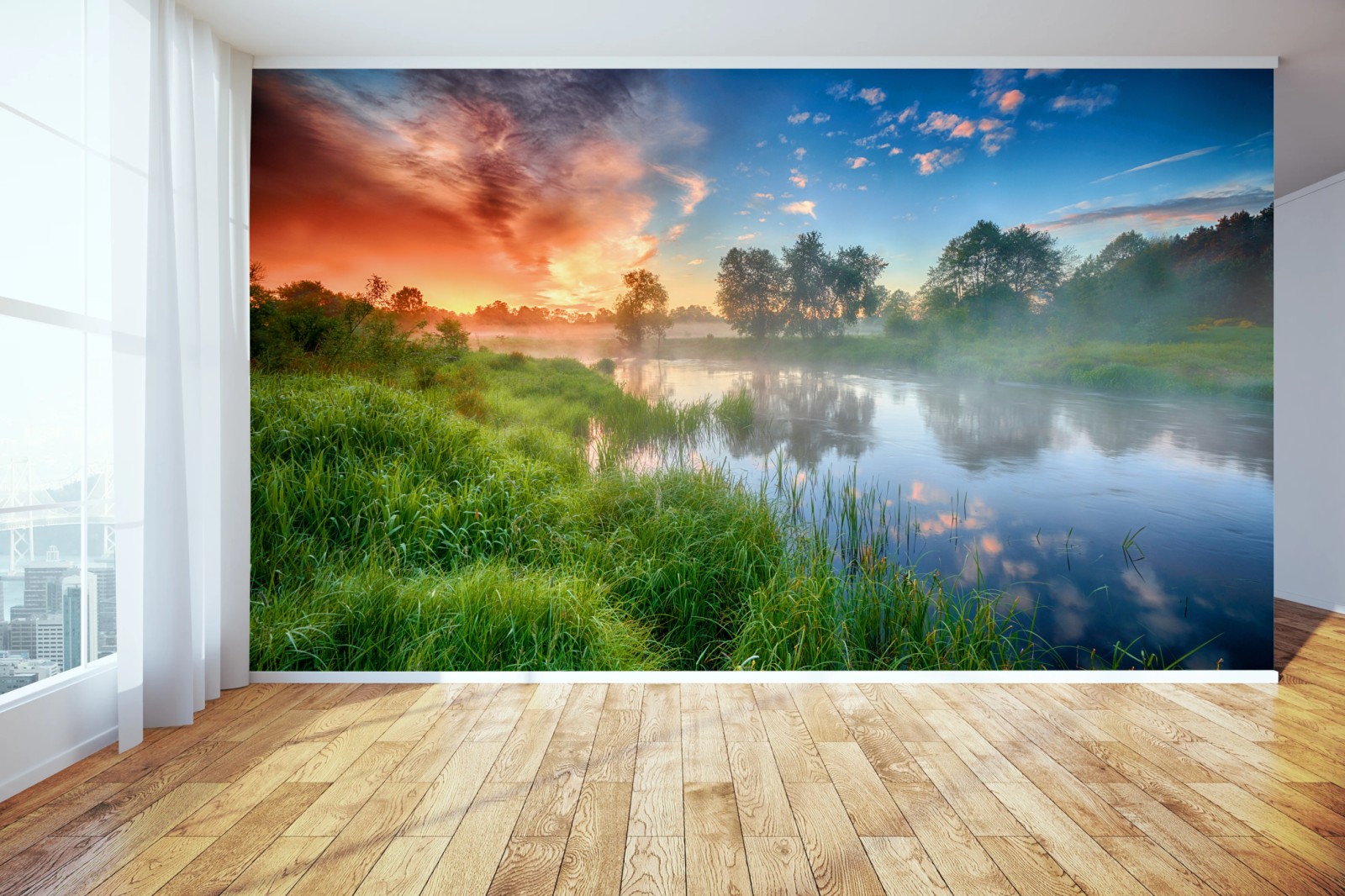 Fototapeta Mgła o świcie nad brzegiem rzeki