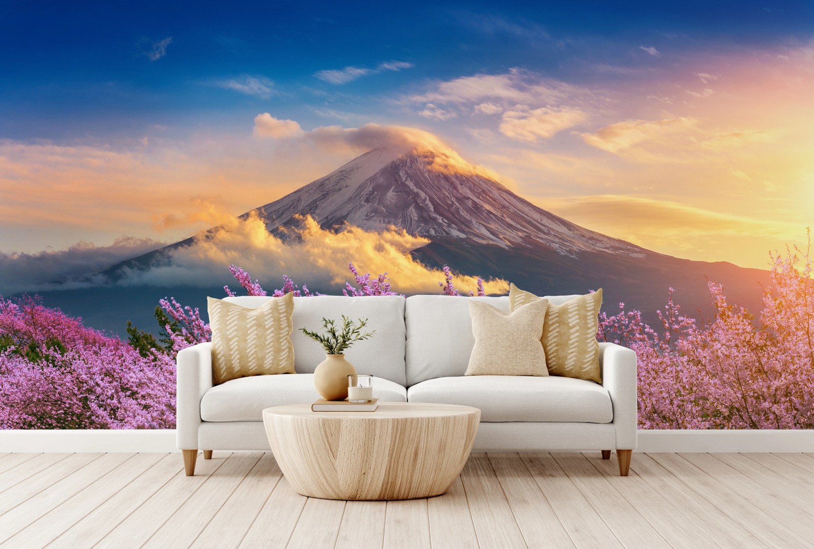 Fototapeta Góra Fuji z kwitnącą sakurą o wschodzie słońca