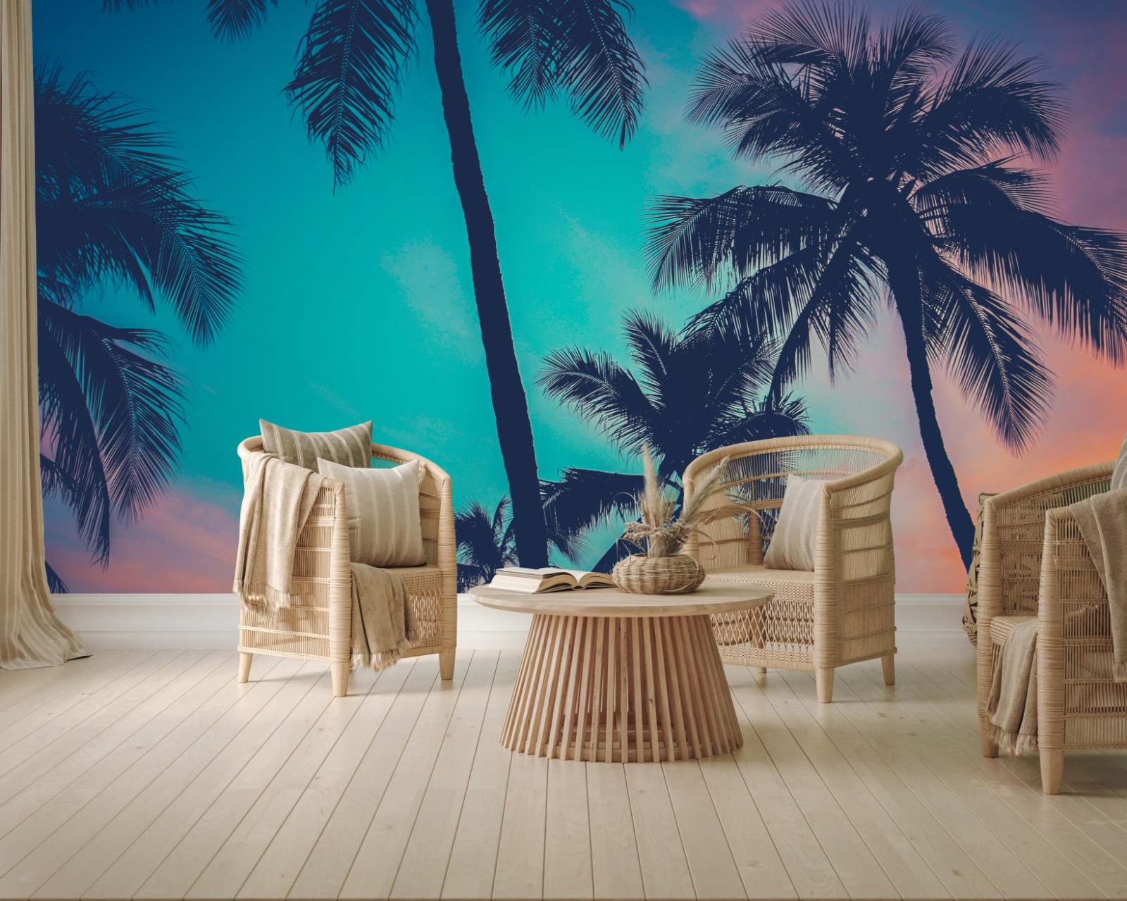 Fototapeta Vintage palmy na Hawajach o zachodzie słońca