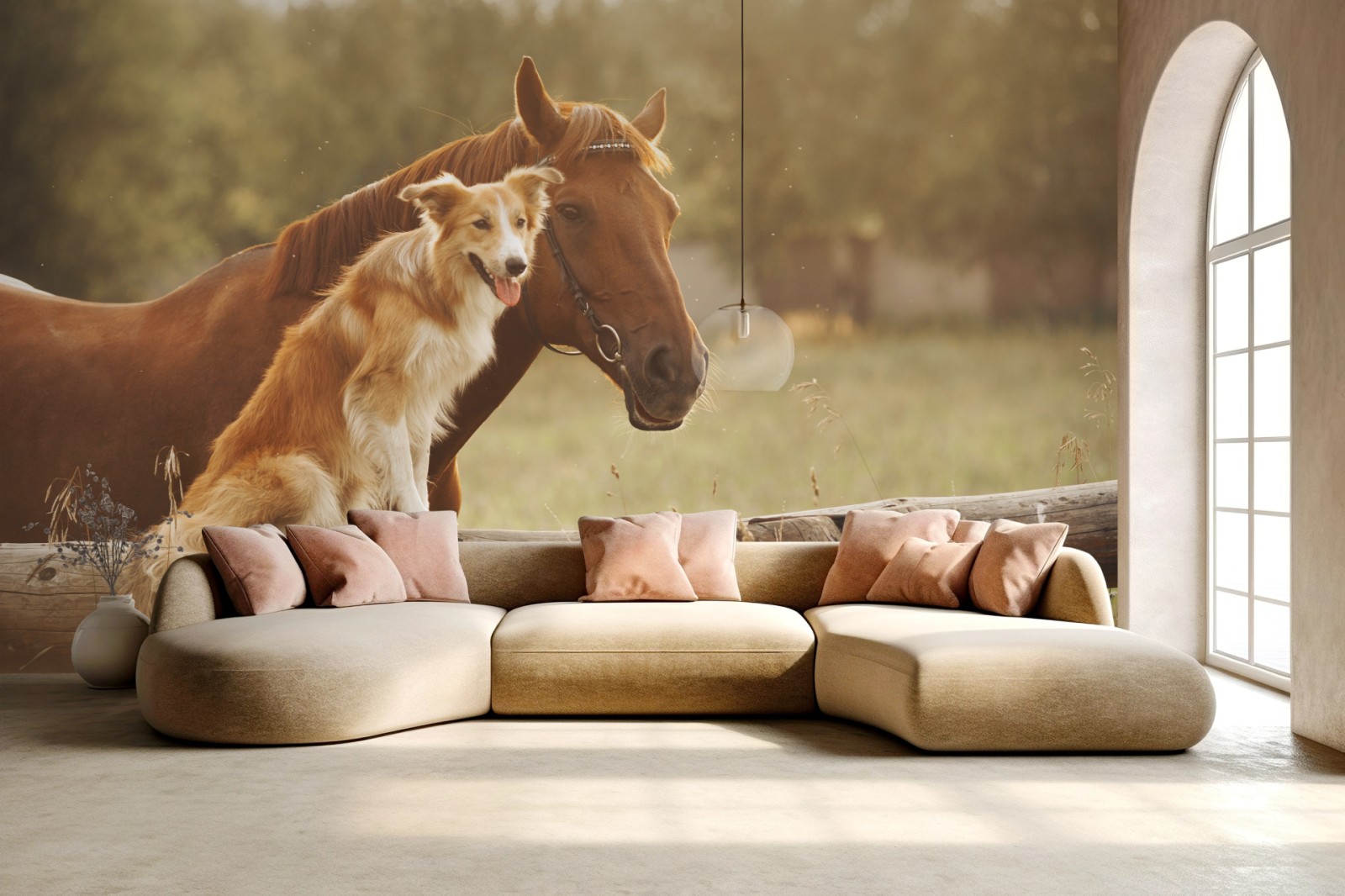 Fototapeta Słoneczni towarzysze: pies i koń