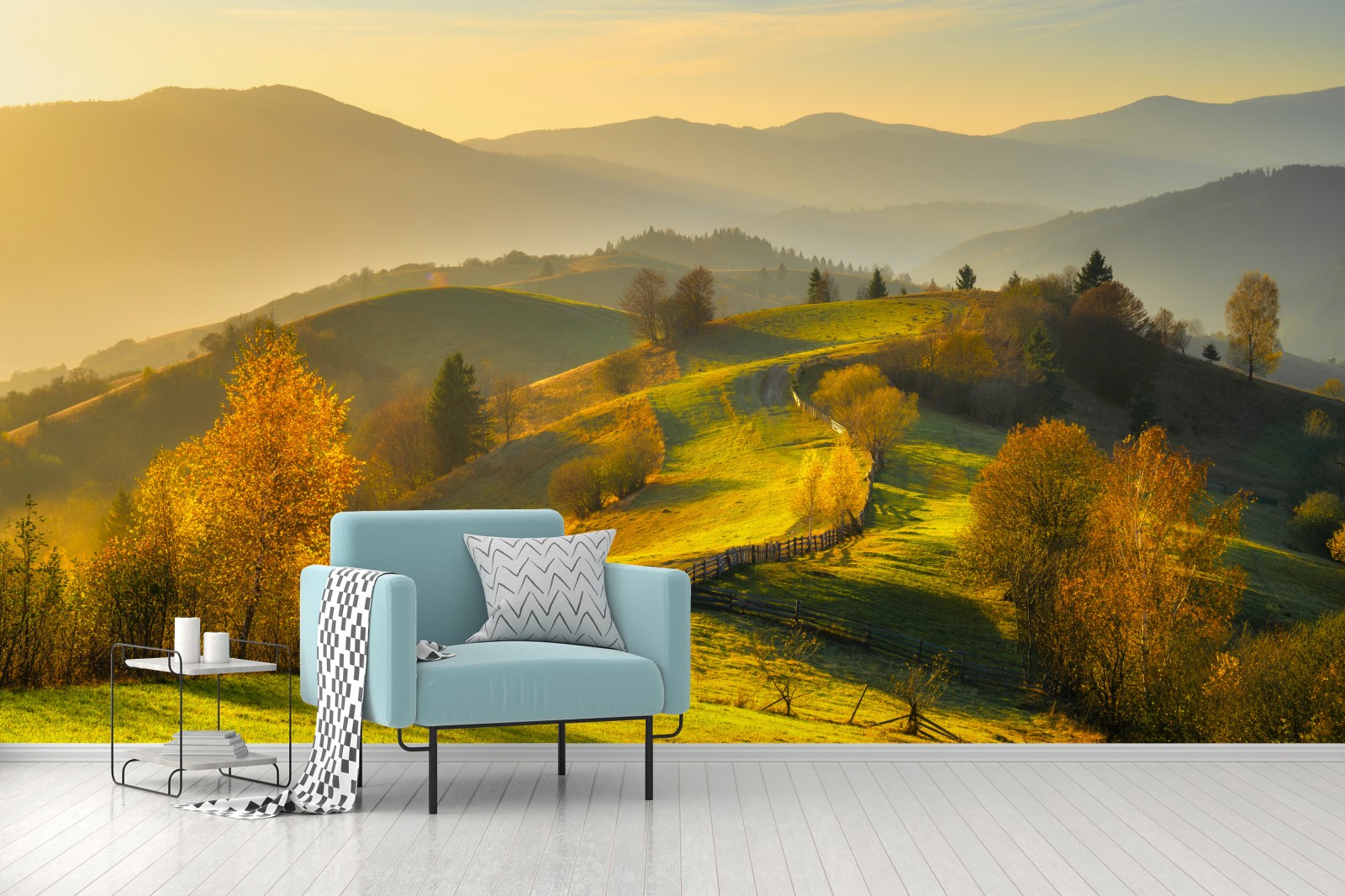 Fototapeta Złote jesienne wzgórza o zachodzie słońca