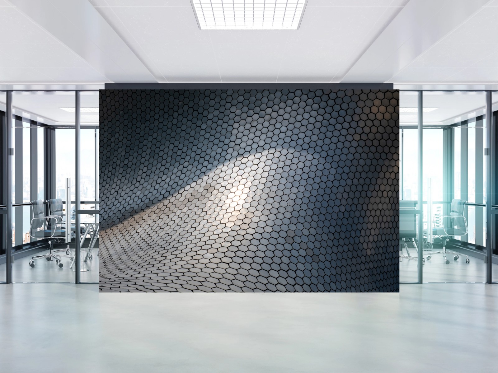 Fototapeta Metaliczna heksagonalna elewacja geometryczna