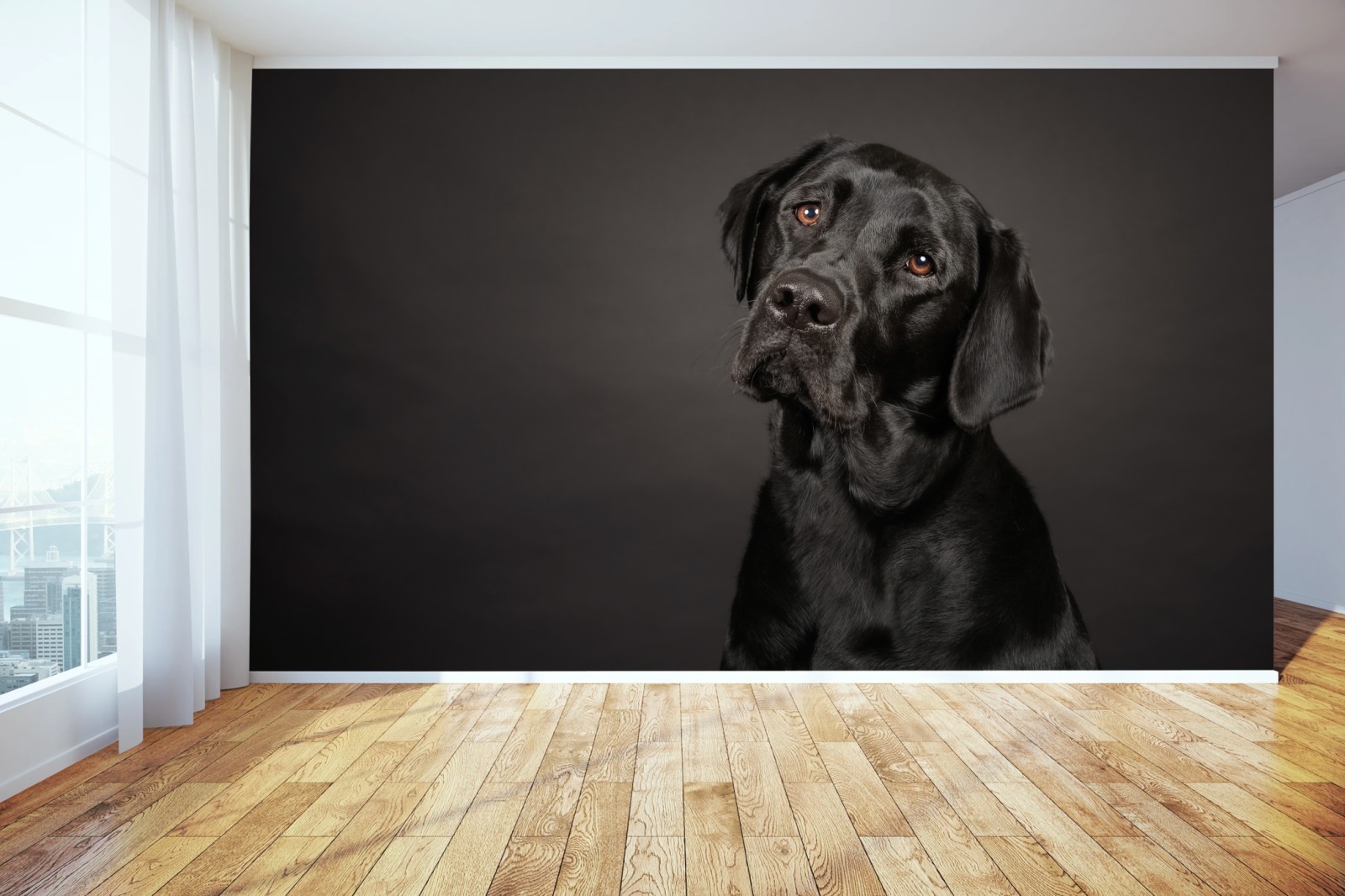 - minimalistyczny, zwierzę domowe, pies, czarny labrador, labrador, portret psa, fotografia zwierząt, czarny pies, portret studyjny, brązowe oczy
