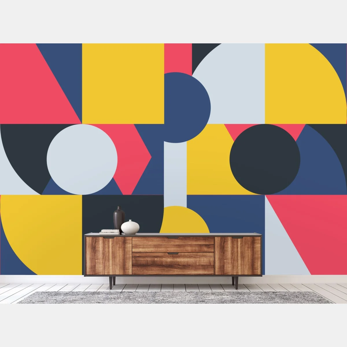 - kolorowy, geometryczny, dekoracja ścienna, wzór, minimalistyczny, nowoczesny, abstrakcyjny, kształty, współczesny, artystyczny