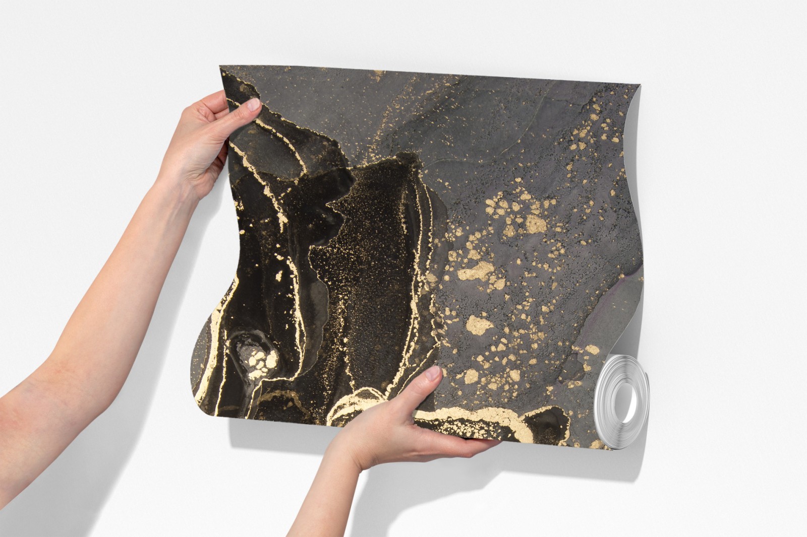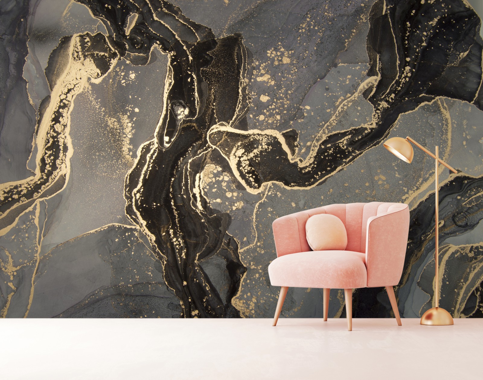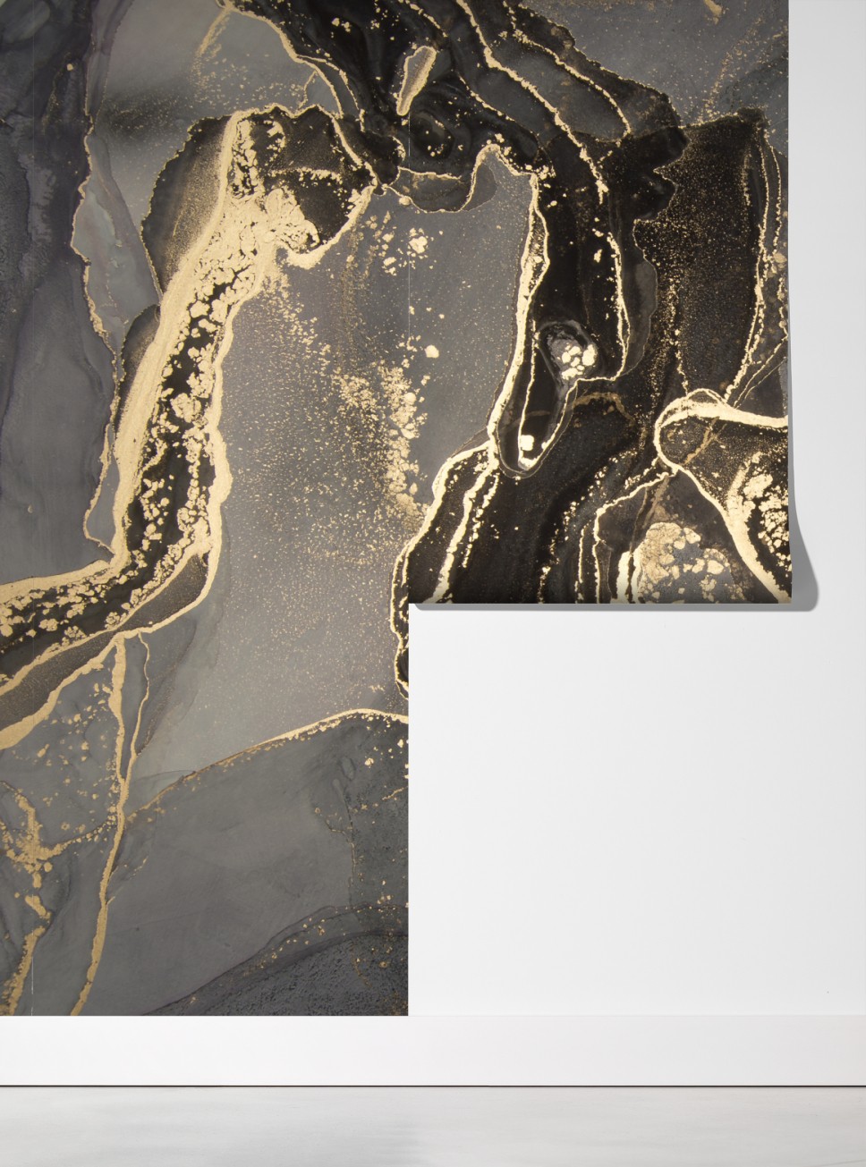 Dodaj luksusu i nowoczesnego charakteru do wnętrza dzięki temu abstrakcyjnemu czarno-złotemu motywowi marmuru.