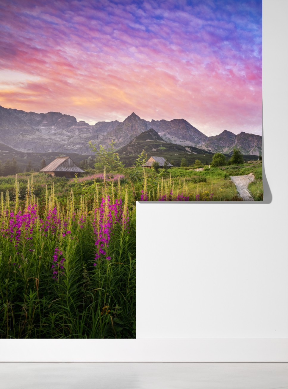 Poczuj spokój górskiego poranka z kolorowym wschodem słońca nad Hala Gasienicowa, idealne do ozdobienia ścian.