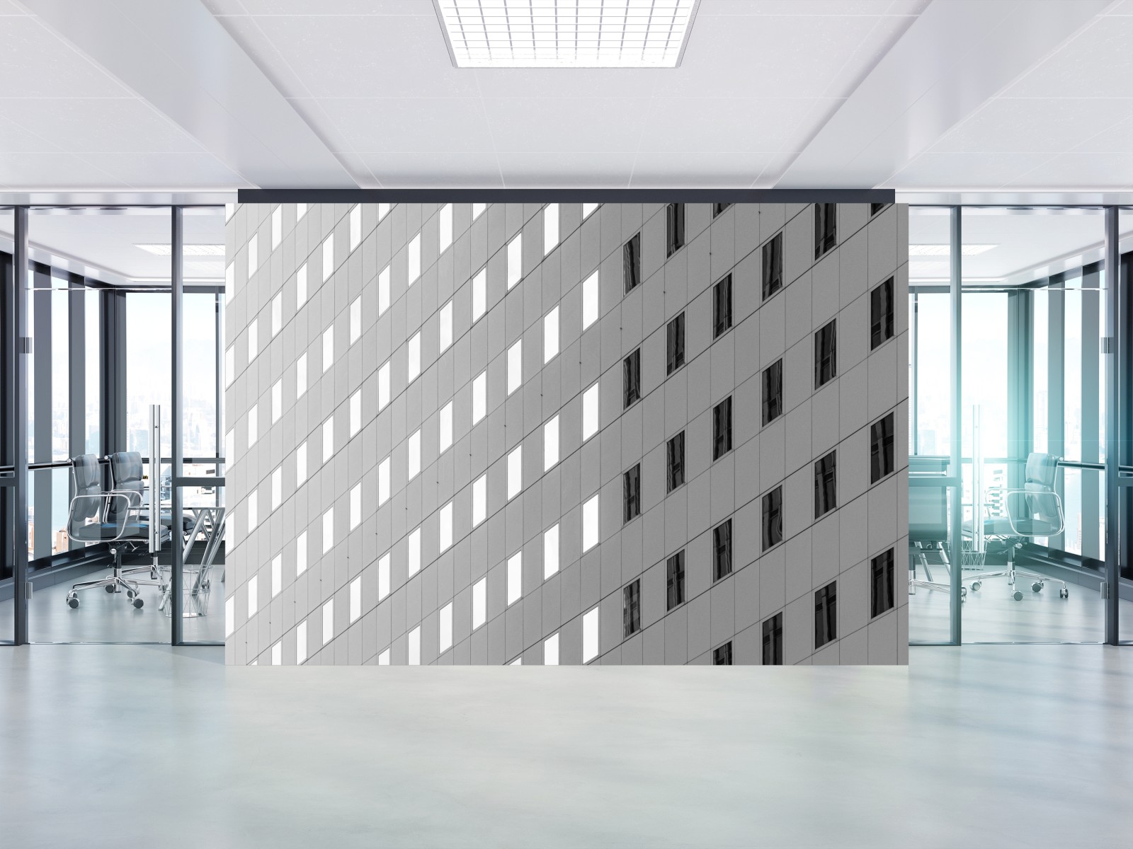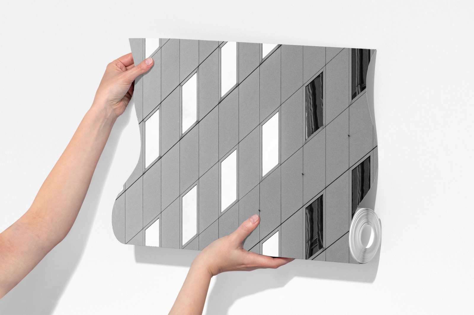 Czyste geometryczne linie i powtarzające się okna tworzą spokojną minimalistyczną kompozycję idealną do nowoczesnych wnętrz.