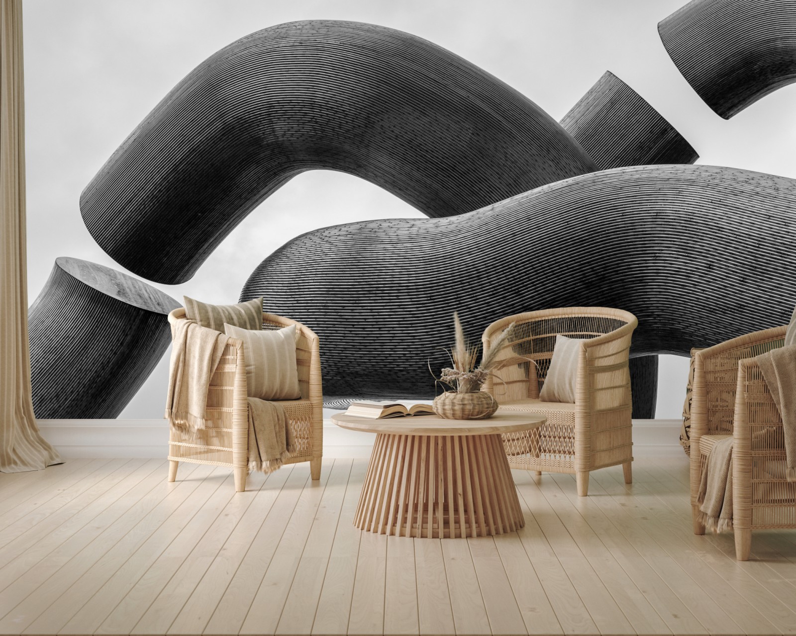 Fototapeta Krzywe formy abstrakcyjna rzeźba w odcieniach szarości