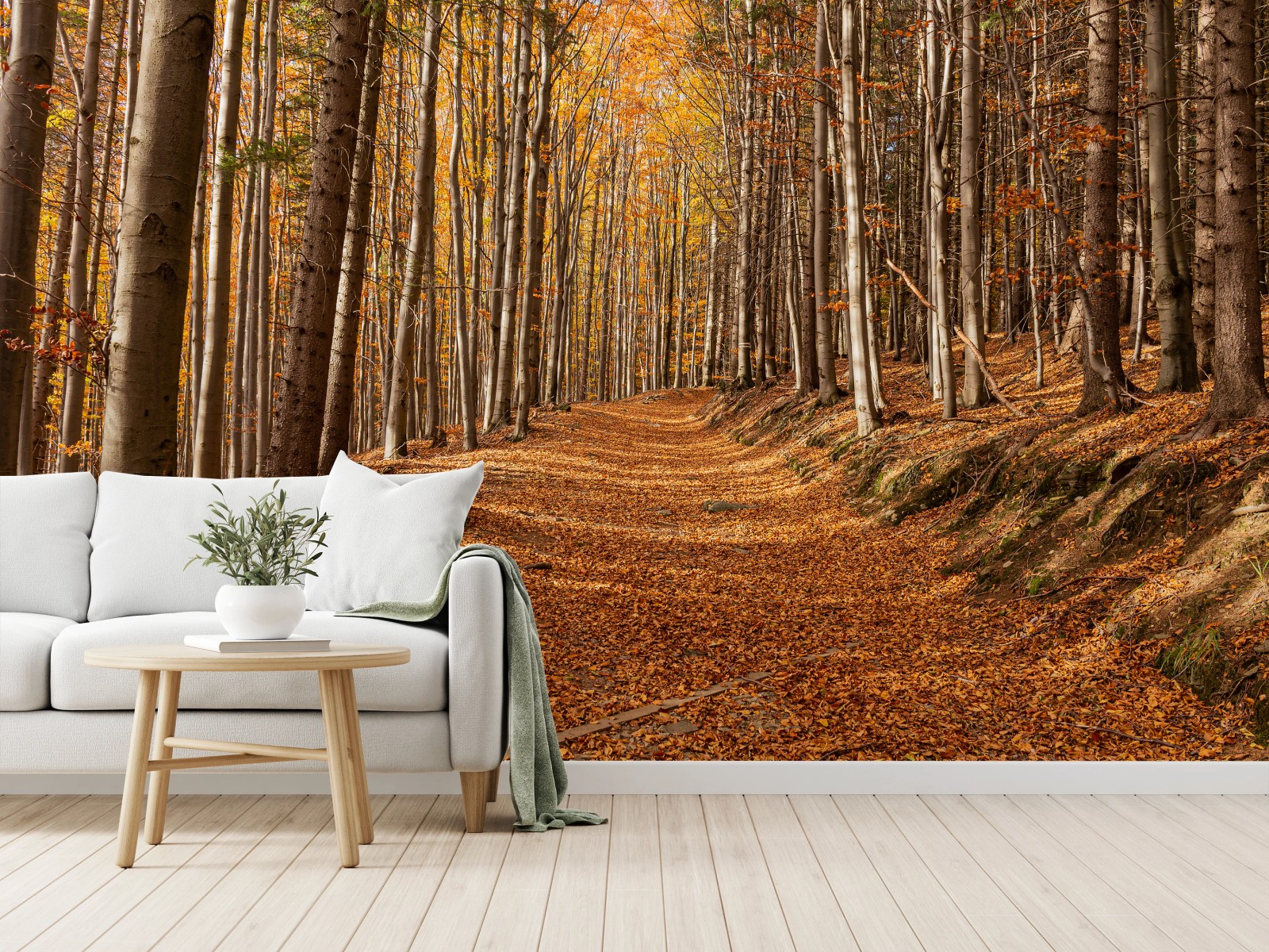 Fototapeta Jesienna ścieżka leśna w złotych liściach