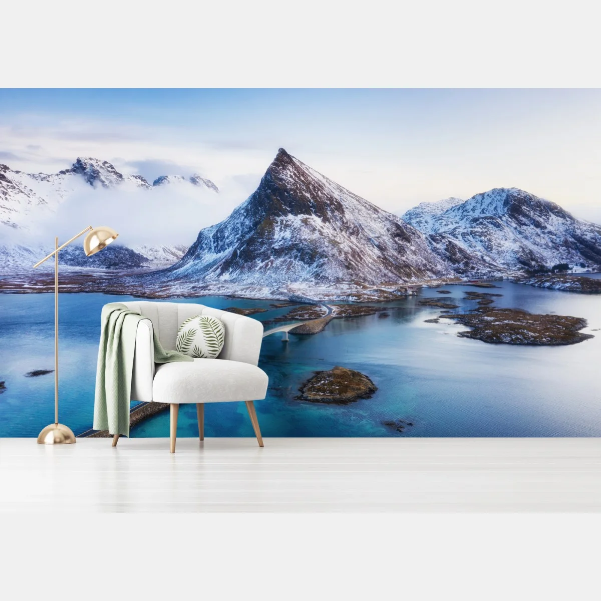Fototapeta Lofoty most i góra z lotu ptaka